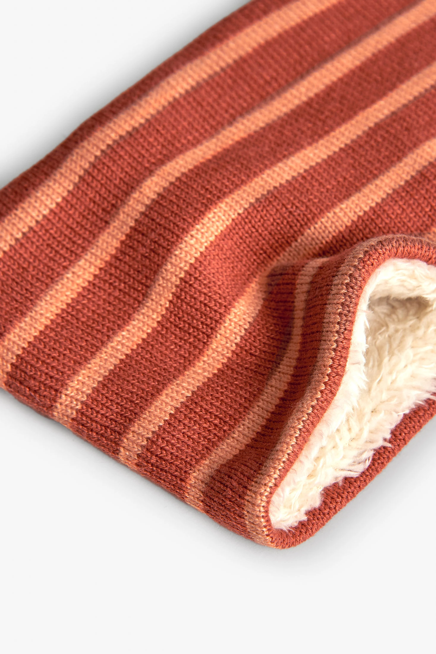 Gestrickter Schal für Babys, ideal, um Ihr Kleines in der kalten Jahreszeit warm zu halten. Mit einem klassischen Streifendesign in Orangetönen ist dieses Accessoire perfekt, um jedes Winteroutfit zu ergänzen. Hergestellt aus einem weichen Stoff, der Komfort und Wärme gewährleistet, eignet er sich für Babys bis zu 24 Monaten. Kombinieren Sie ihn mit einem niedlichen Mantel- und Mützenset für einen gemütlichen und charmanten Look bei jedem Ausflug.