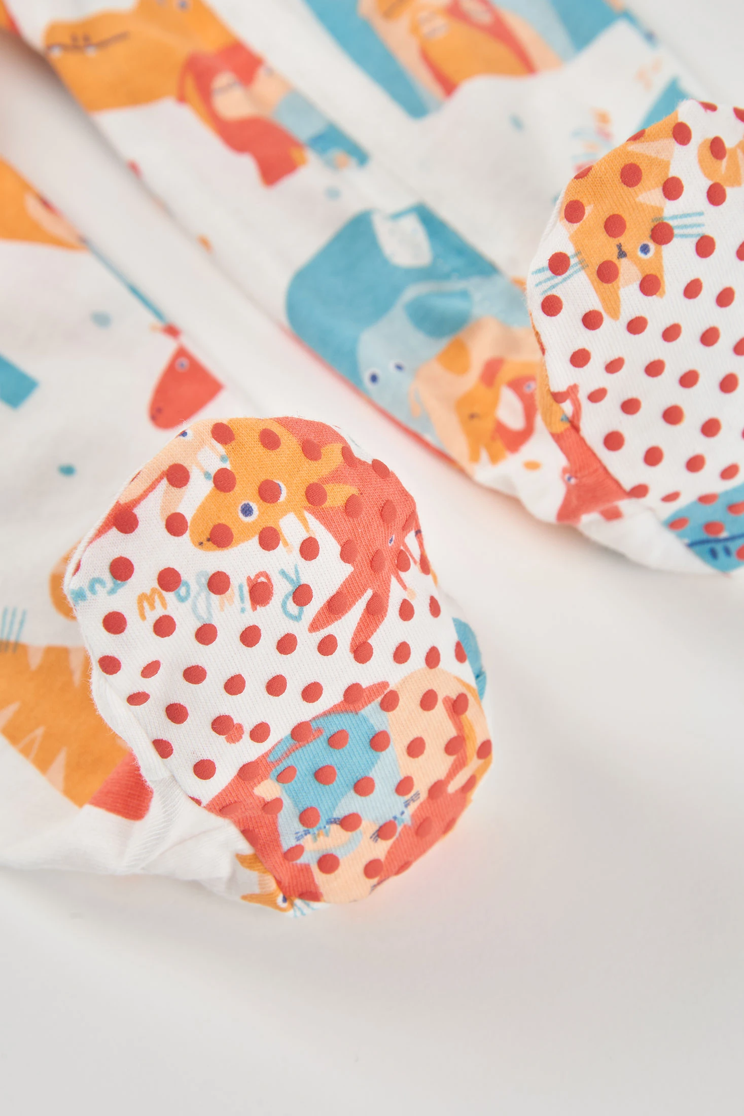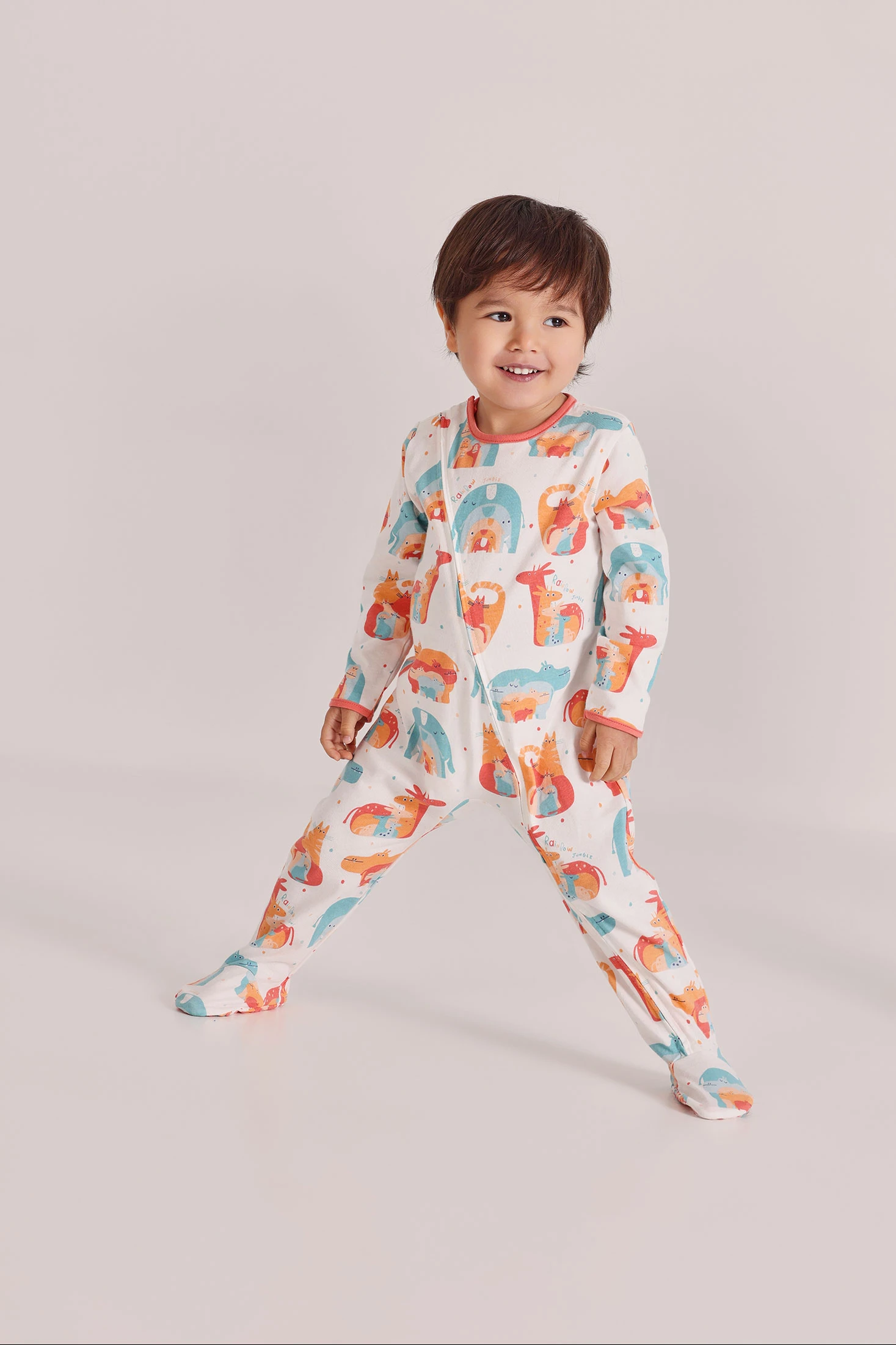 Strickoverall für Babys, der durch sein farbenfrohes und lustiges Design mit Tiermotiven hervorsticht. Hergestellt aus weichem und bequemem Stoff, ideal für die Kleinsten. Erhältlich in Größen von 0 bis 24 Monaten, passt er sich dem Wachstum des Babys an. Sein Design beinhaltet einen praktischen Verschluss zum einfachen Windelwechsel. Mit lebhaften Farben wie Blau, Orange und Rot auf hellem Hintergrund ist dieser Overall perfekt, um Ihr Baby an den kühleren Tagen von Sommer und Frühling warm und stilvoll zu halten. Lange Ärmel sorgen für Wärme und Komfort.