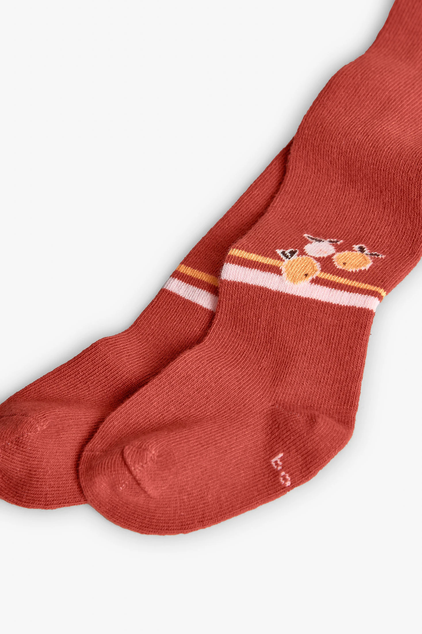 Strickstrumpfhose für Babys in Orange mit Fruchtmotiven, ideal, um die Kleinsten in den kalten Monaten warm und bequem zu halten. Vielseitiges Kleidungsstück in Terrakottaton, das sich leicht mit verschiedenen Kleidungsstücken kombinieren lässt und jedem Outfit eine fröhliche Note verleiht. Erhältlich in Größen von 1 Monat bis 2 Jahre. Aus weichen und hochwertigen Materialien gefertigt, ist diese Strumpfhose eine praktische und stilvolle Wahl für die Kinderkleidung.