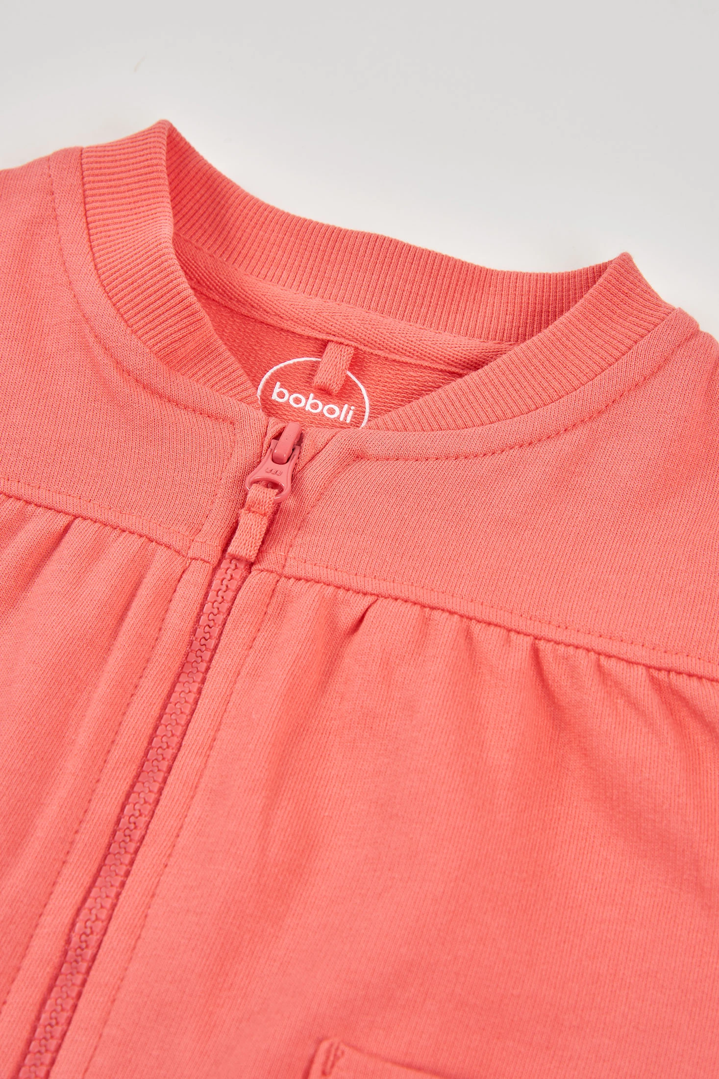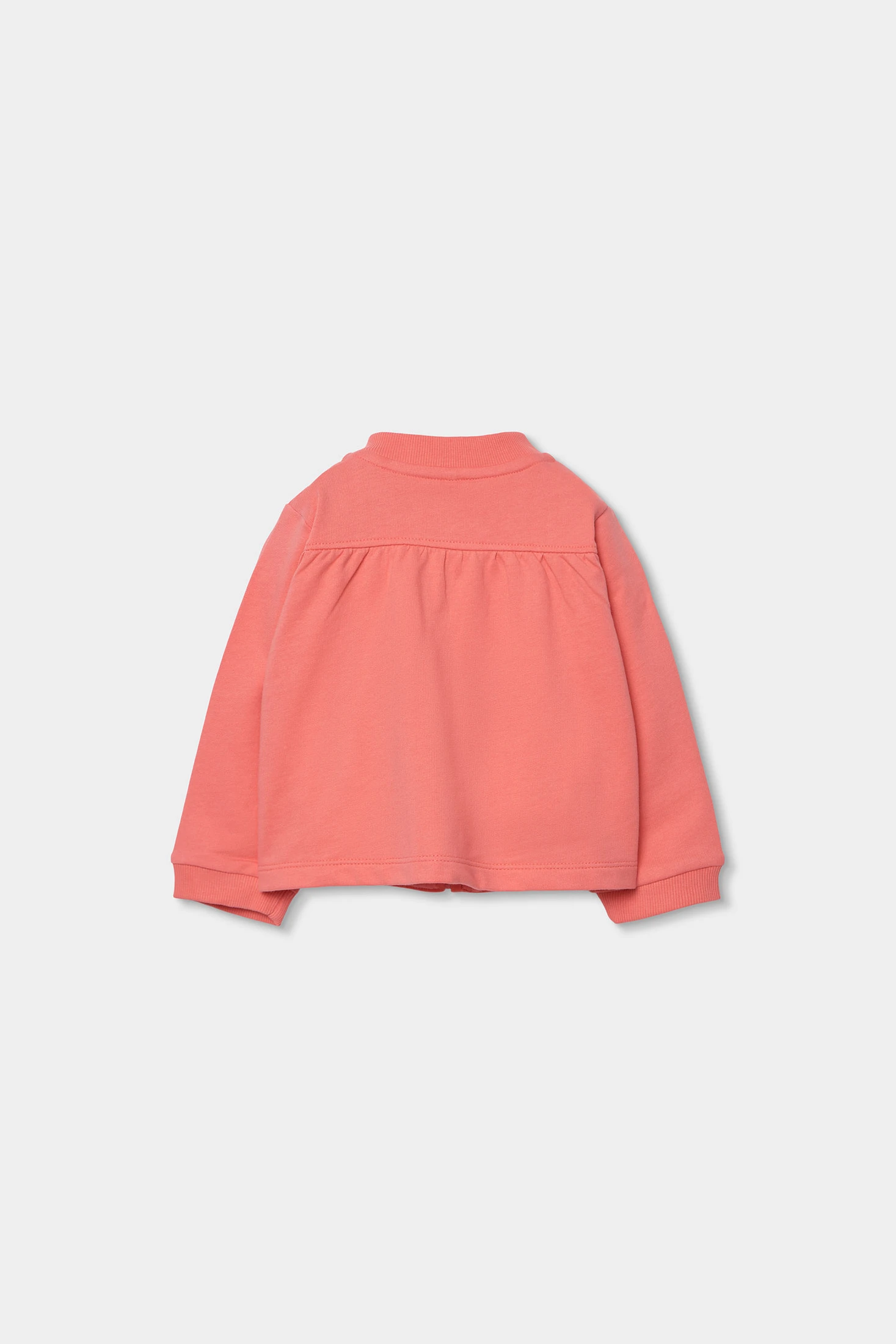 Sweatjacke aus Frottee für Mädchen-Babys, ideal für die Übergangszeit. In kräftigem Rosa, aus weichem Frotteematerial gefertigt und mit einem frontalen Reißverschluss, der die Nutzung erleichtert. Mit geripptem Kragen und Bündchen sowie zwei Fronttaschen designt, ist sie perfekt, um Ihr Baby warm zu halten. Verfügbar in Größen von 1 bis 24 Monate.
