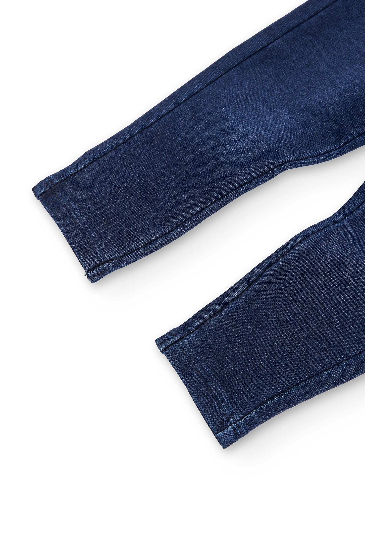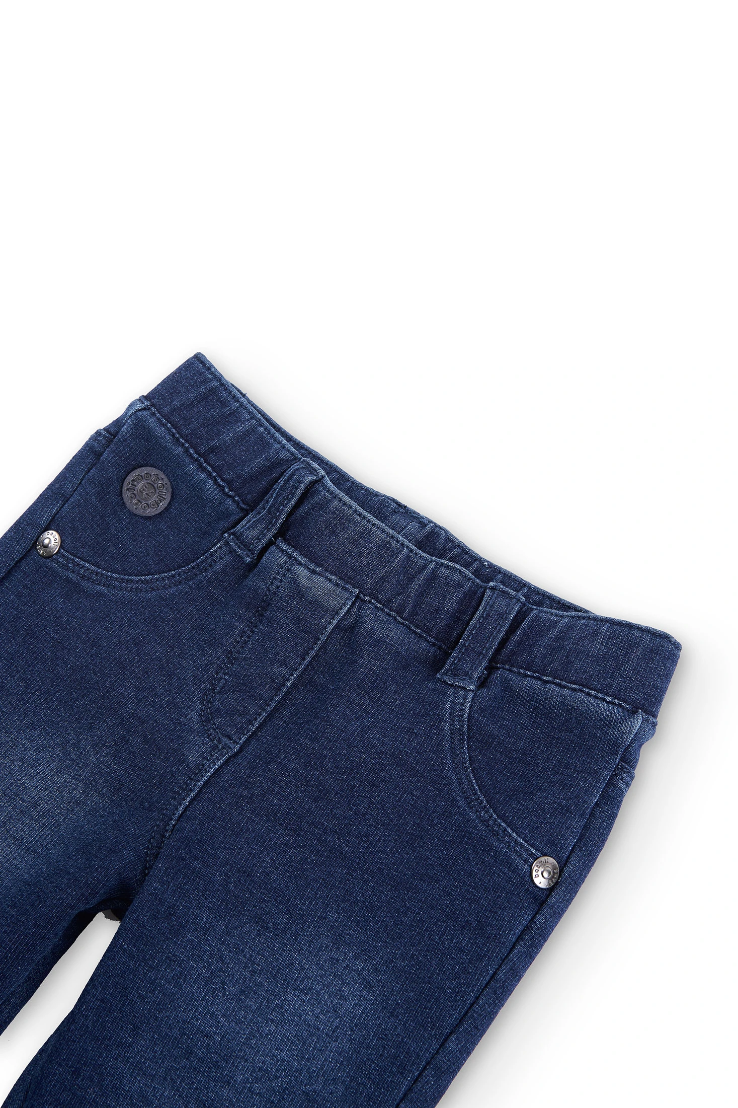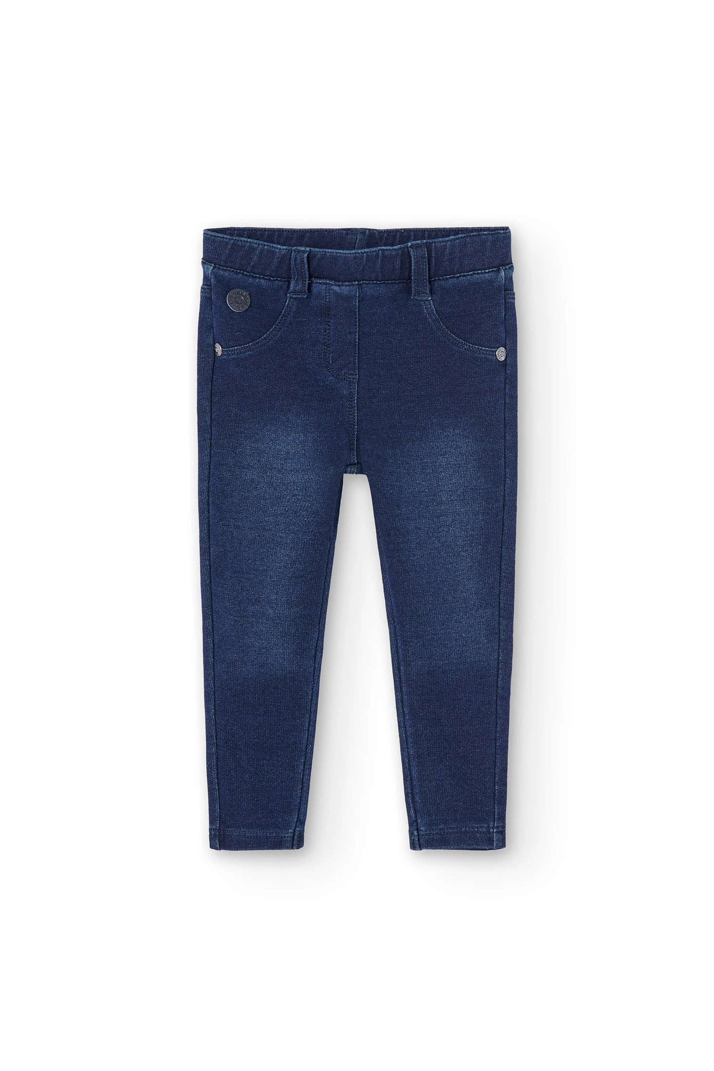 Dies ist eine Denim-Fleecehose für Baby-Mädchen, ideal für die Übergangszeit. Ihr Strickstoff verleiht ihr eine weiche und bequeme Textur, perfekt für die empfindliche Haut der Kleinen. Das Design ist schlicht, ohne Verzierungen, und in einem schönen Blau gehalten. Diese Hose ist in einer breiten Größenauswahl erhältlich, von 6 Monaten bis 8 Jahren. Es ist ein vielseitiges und leicht zu kombinierendes Kleidungsstück, das in der Garderobe Ihrer Kleinen nicht fehlen darf.