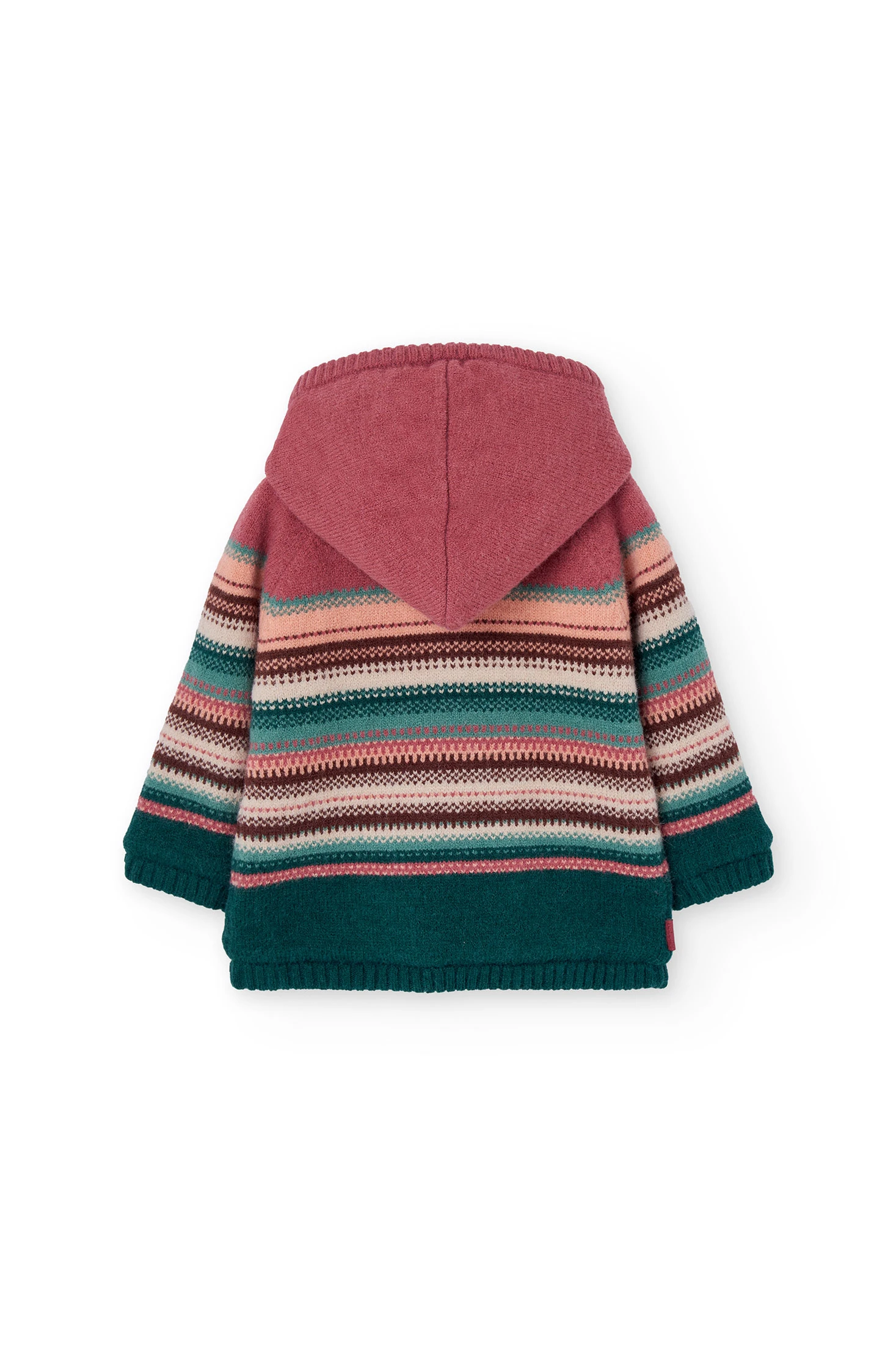 Strickjacke für Mädchen in Erdbeerfarbe mit Streifen, entworfen, um Wärme und Stil während der Herbst- und Wintersaison zu bieten. Aus einem weichen und bequemen Stoff gefertigt, sorgt sie dafür, dass Ihr Kleines an kalten Tagen warm bleibt. Ein praktischer Verschluss mit vorderen Knöpfen ermöglicht einfaches An- und Ausziehen, ideal für den Alltag. Erhältlich in Größen von 12 Monaten bis 10 Jahren, passt sie perfekt zu Hosen, Kleidern oder Röcken für einen bezaubernden und vielseitigen Look.