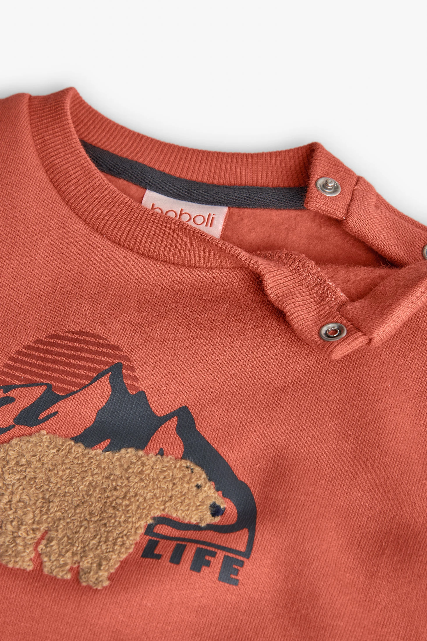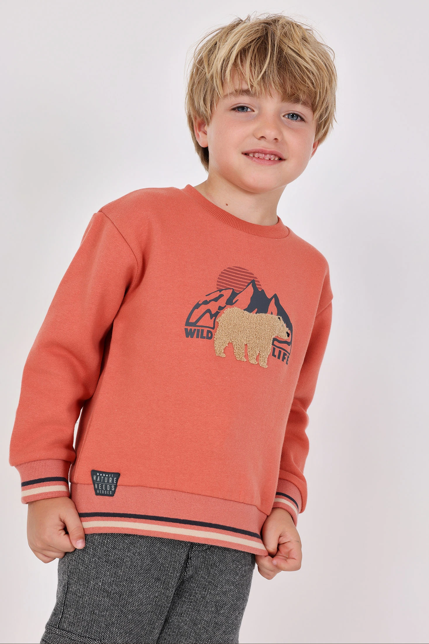 Oranger Sweatshirt aus Frottee für Jungen, ideal, um die Kleinen in den kälteren Jahreszeiten warm und bequem zu halten. Das Kleidungsstück ist aus hochwertigem Frottee gefertigt, der sich weich anfühlt und strapazierfähig ist. Dank seines zeitlosen Designs und der neutralen Farbe lässt es sich leicht mit Jeans oder Freizeithosen kombinieren und ist eine vielseitige Option für den Alltag. Erhältlich in Größen von 12 Monaten bis 10 Jahren und bietet eine angemessene Passform für verschiedene Altersgruppen. Sorgt für einen gemütlichen und eleganten Look bei jeder Gelegenheit.
