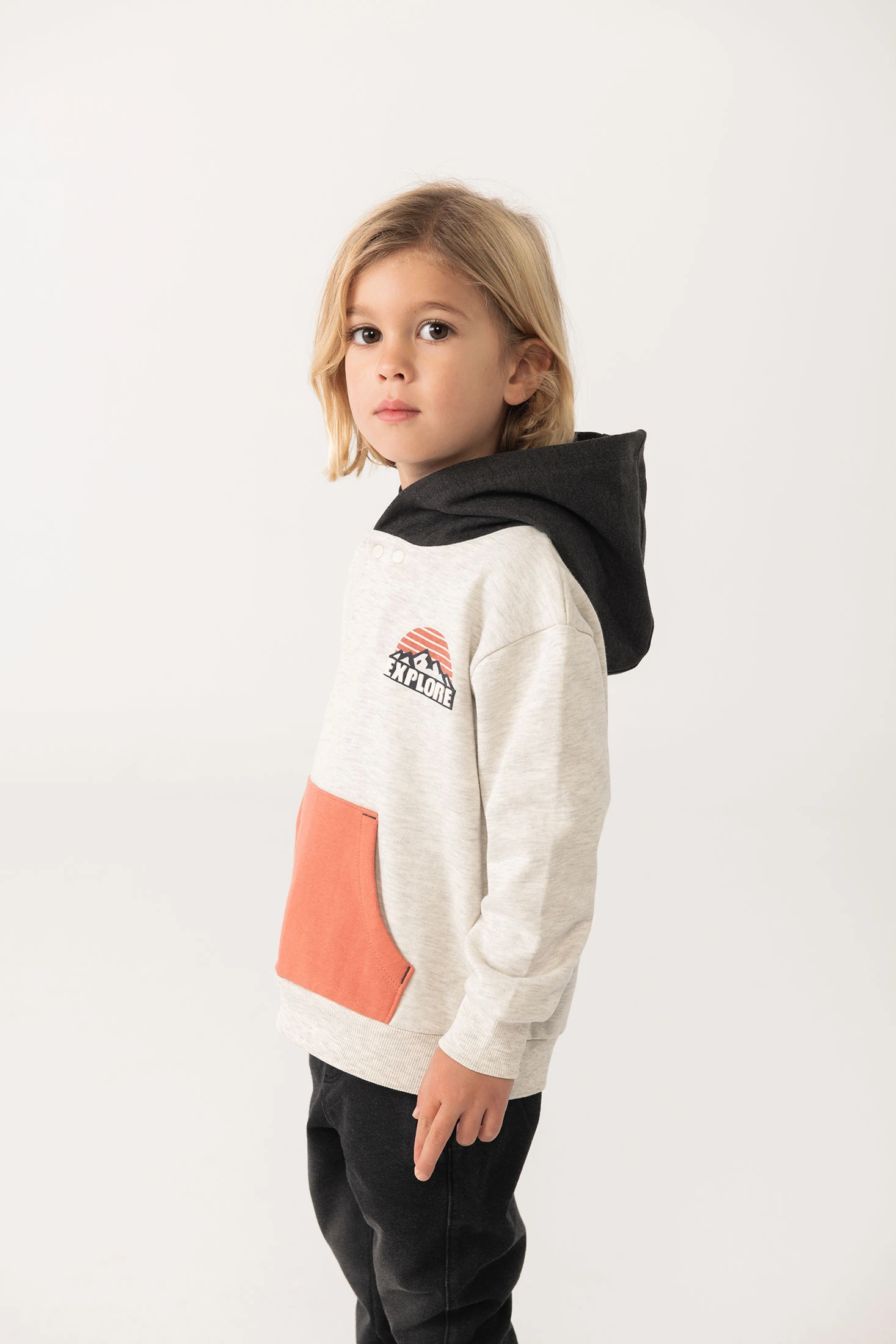 Kapuzenpullover aus Frottee für Jungen in Rohweiß, perfekt für die Herbst- und Wintersaison. Hergestellt aus weichem und warmem Frottee, garantiert er Komfort und Stil. Ansprechendes Design mit Tasche, das der Garderobe deines Kleinen einen modernen und fröhlichen Touch verleiht. Erhältlich in Größen von 12 Monaten bis 10 Jahren, lässt er sich leicht mit Hosen oder Jeans für einen lässigen und bequemen Look kombinieren. Ein unverzichtbares Basic, um deinen Kleinen an kühleren Tagen warm und modisch zu halten.