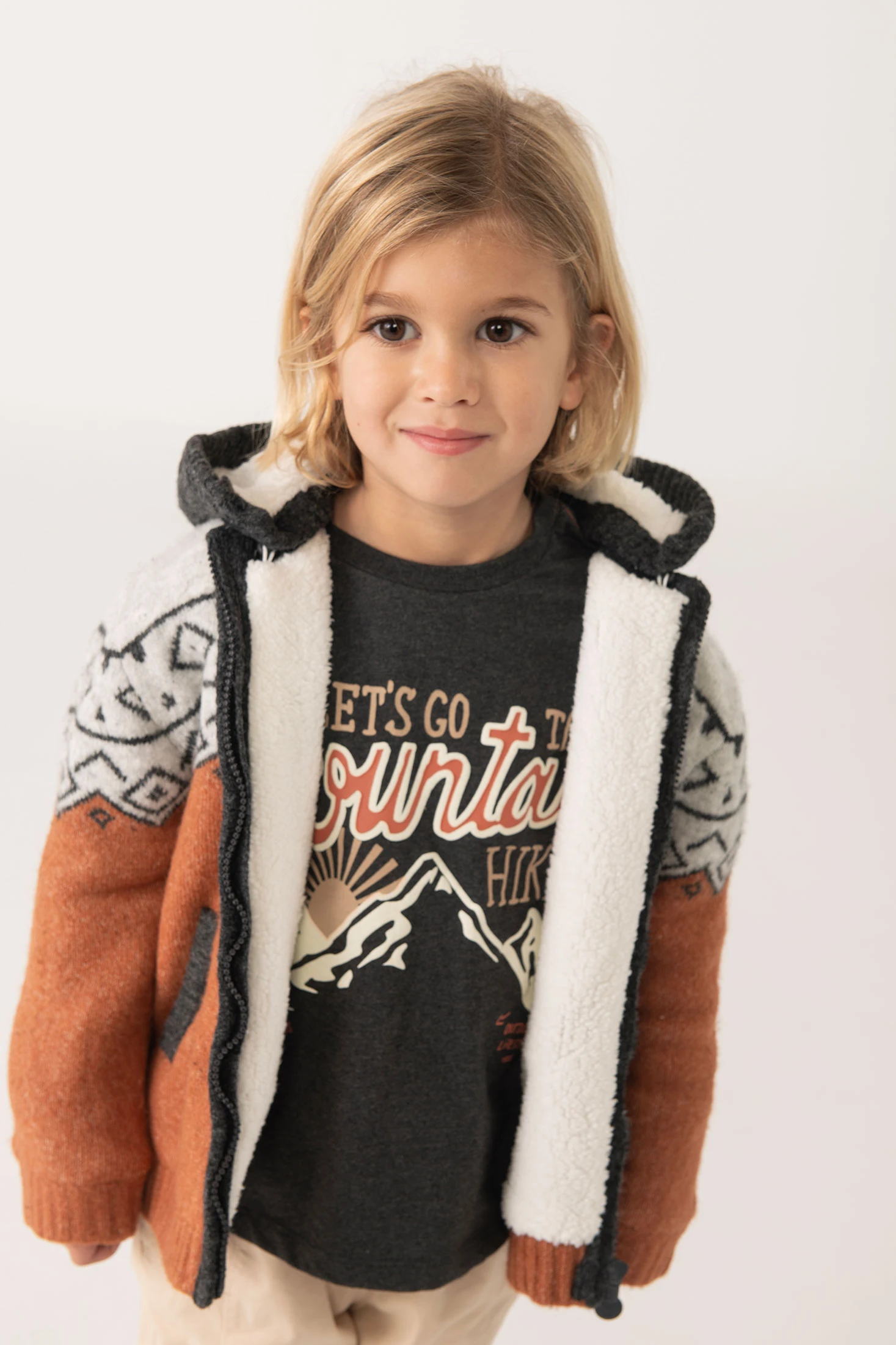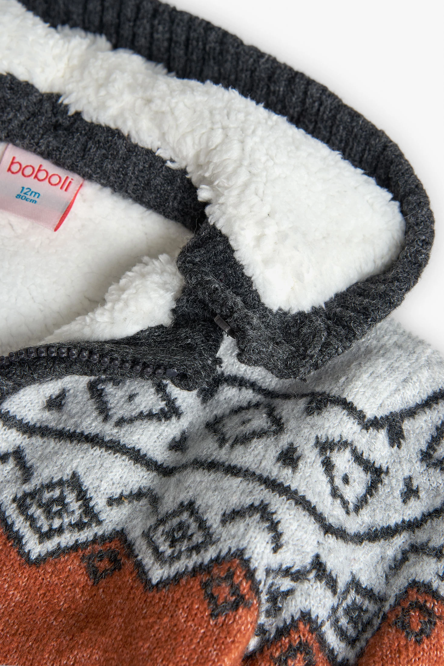 Strickjacke für Jungen in einem lebhaften Orangeton, ideal für die Herbst- und Wintersaison. Hergestellt aus weichen und warmen Materialien, garantiert das Kleidungsstück Komfort und Stil. Frontverschluss mit Reißverschluss, der das Anziehen erleichtert und somit praktisch für die Kleinen ist. Erhältlich in Größen von 12 Monaten bis 10 Jahren, lässt sie sich perfekt mit Hosen und T-Shirts in neutralen oder bedruckten Farben kombinieren. Ihr auffälliges Design verleiht jedem Kinderoutfit einen fröhlich bunten Akzent.