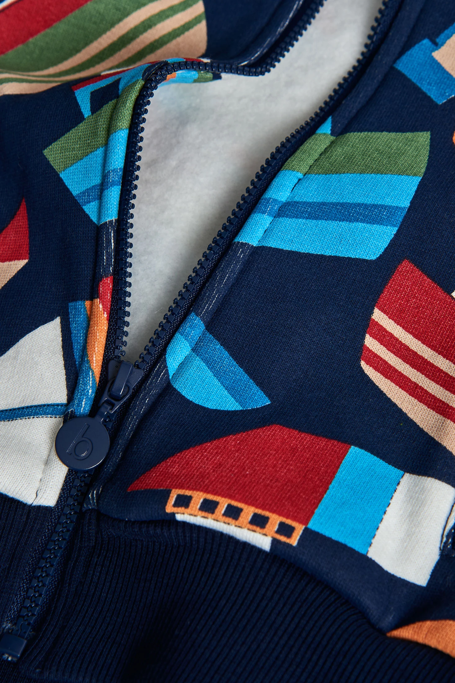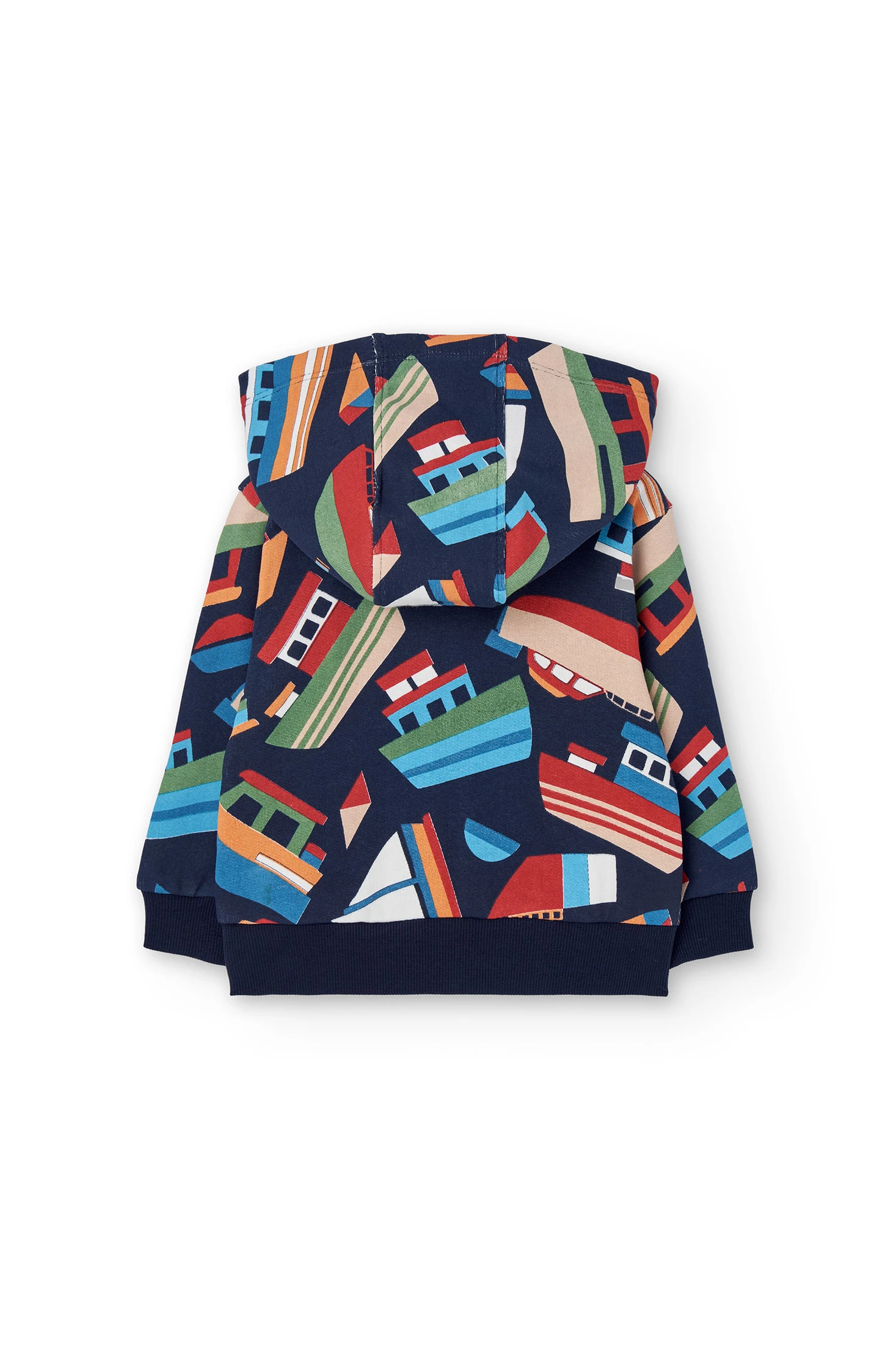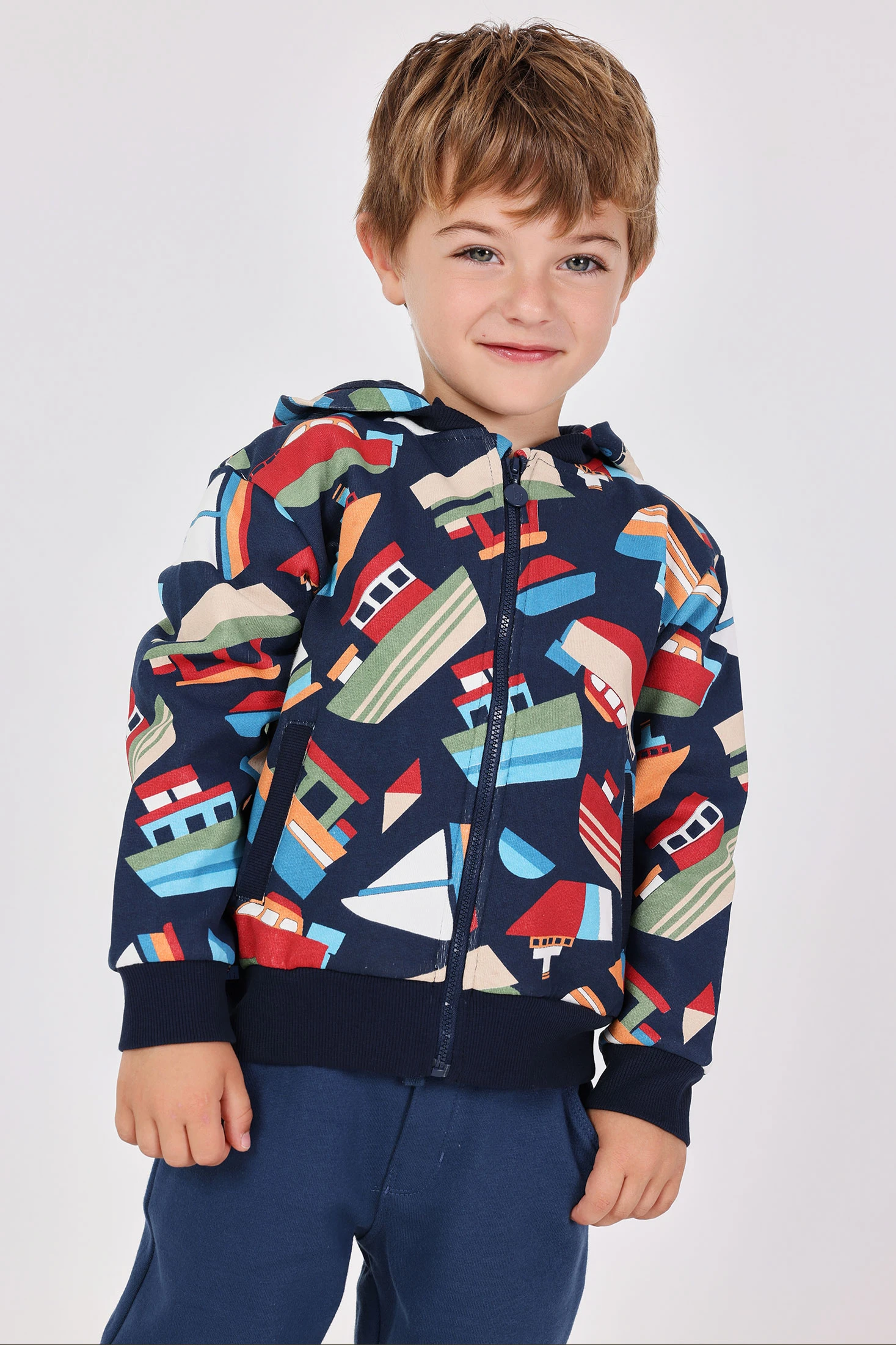 Marineblaue Jungenjacke aus Plüsch mit Booten