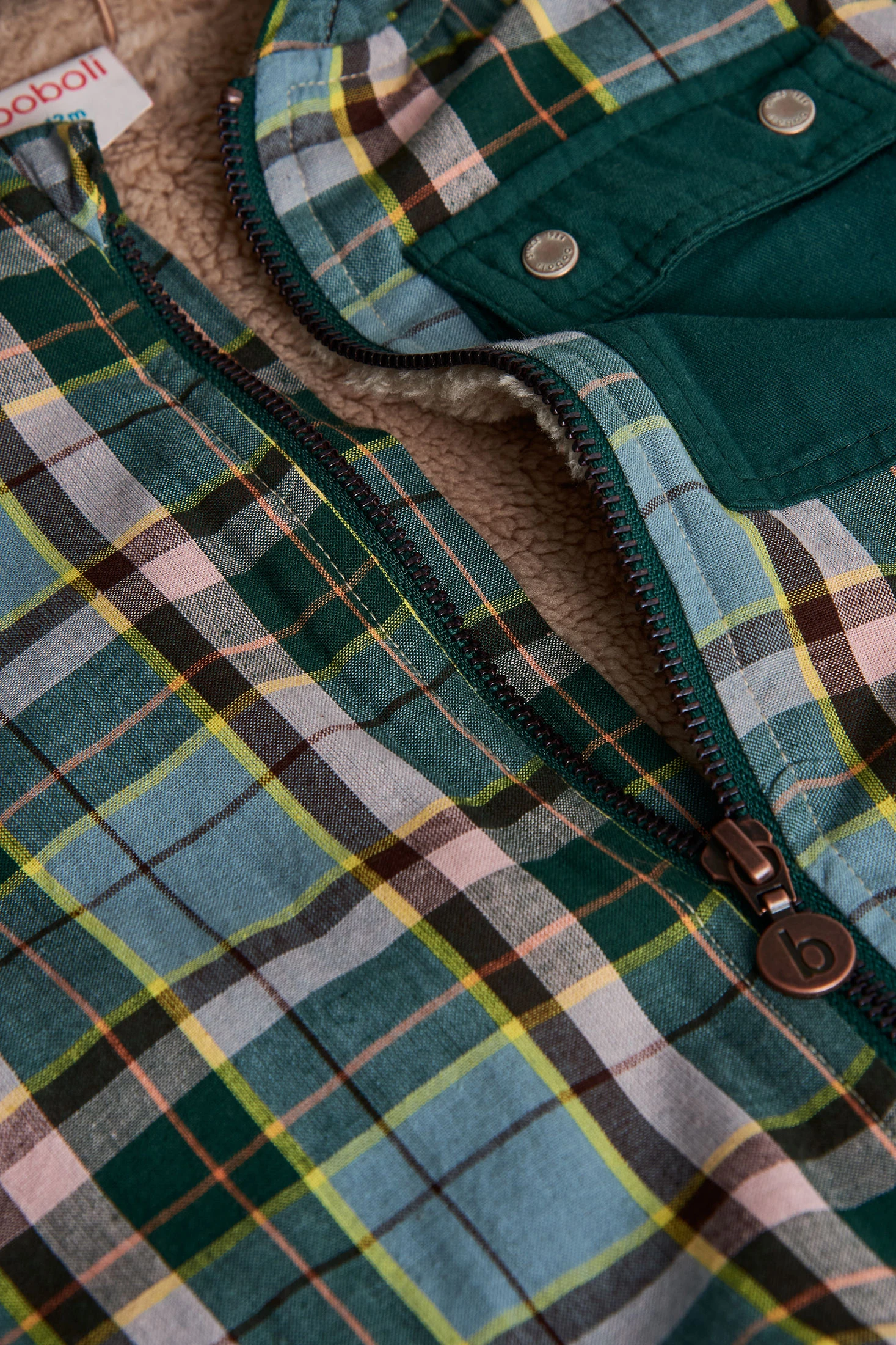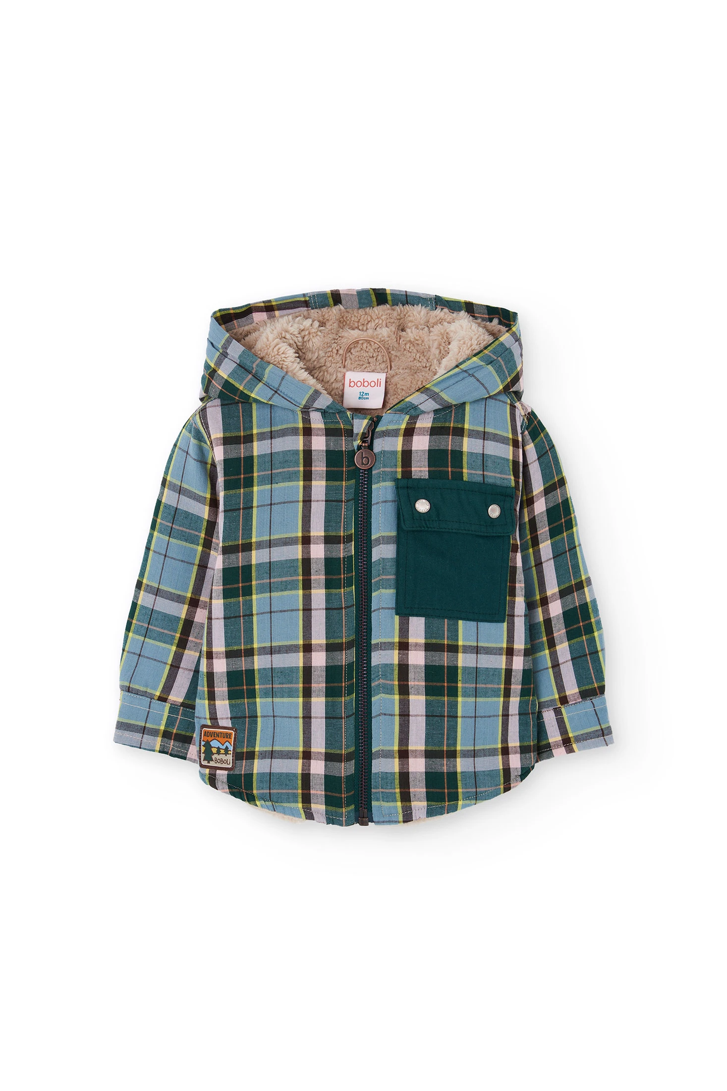 Hemdjacke für Kinder mit grünen und blauen Karos, ideal für die Übergangszeit, vereint Stil und Komfort in einem einzigen Kleidungsstück. Aus einem weichen Strickstoff gefertigt, garantiert sie ein angenehmes Gefühl auf der Haut Ihres Babys. Das moderne Karomuster macht sie leicht kombinierbar, perfekt als zusätzliche Schicht über T-Shirts oder Bodys und geeignet für verschiedene Anlässe. Erhältlich in Größen von 12 Monaten bis 10 Jahren passt sie zu jedem Outfit Ihres Kleinen. Die Knöpfe an der Vorderseite sorgen für einen praktischen Verschluss, der das Umziehen erleichtert. Diese Hemdjacke ist eine stilvolle und funktionale Ergänzung zur Gard