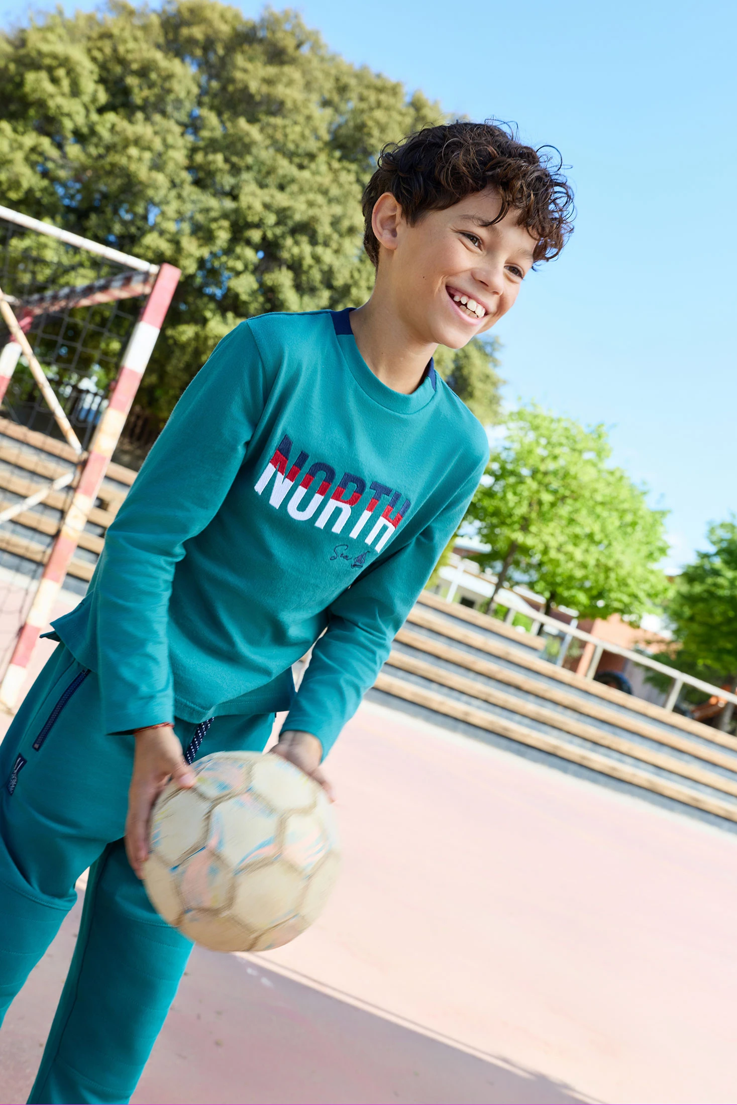 Langärmliges T-Shirt für Jungen, gefertigt aus einem weichen Strickstoff, der täglichen Komfort gewährleistet. Das intensive Grün zeigt das "NORTH"-Design auf der Vorderseite und verleiht einen abenteuerlichen Touch. Der Rundhalsausschnitt bietet eine entspannte Passform, ideal für das Wachstum. Einfach zu kombinieren mit lässigen Hosen oder Jeans, erhältlich in Größen von 2 bis 14 Jahren. Eine vielseitige und warme Option, um den Stil im Herbst und Winter zu bewahren.