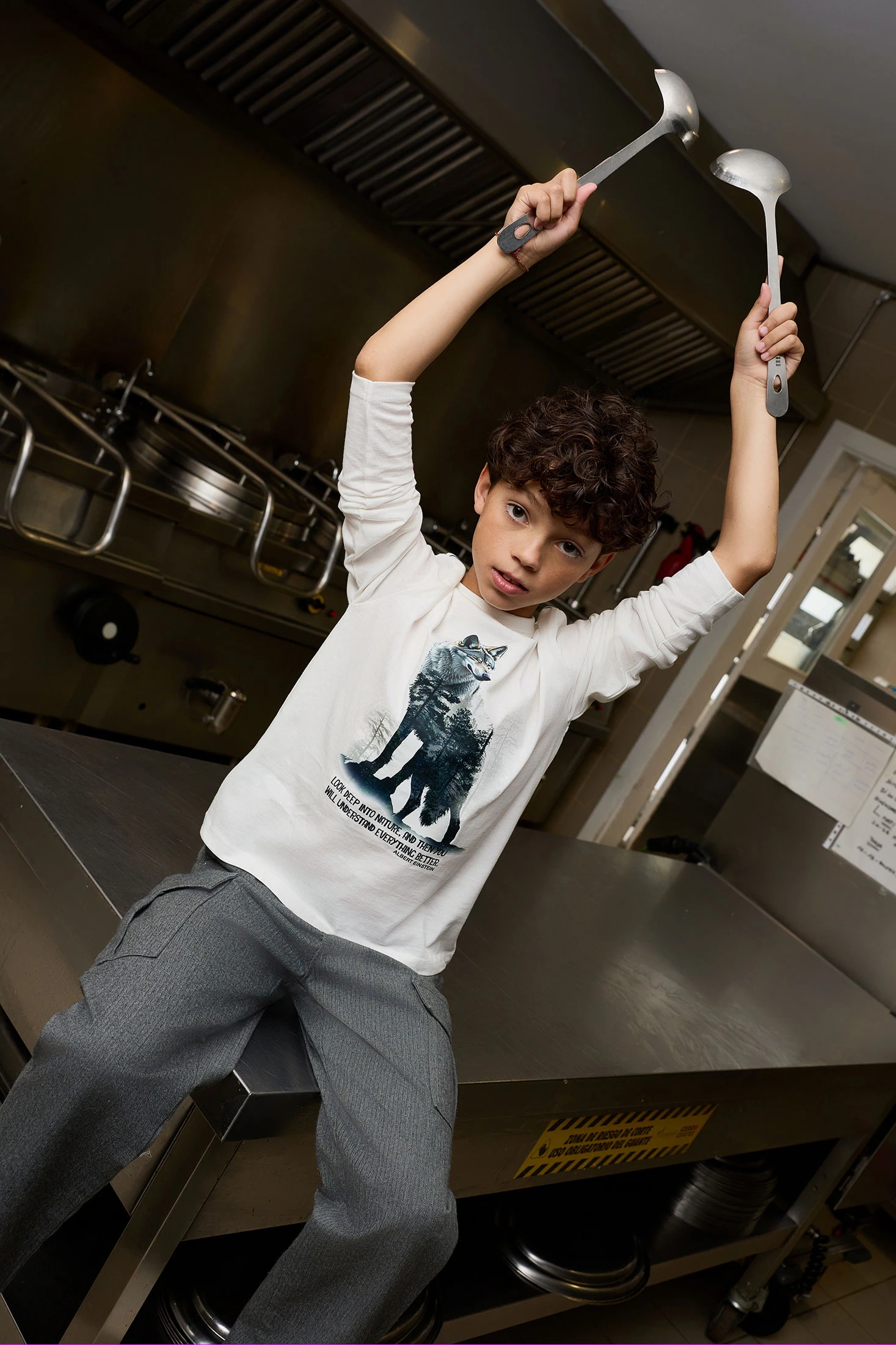 Strick-T-Shirt für Jungen in Weiß, verziert mit einem Wolf-Design, ideal für die Herbst- und Wintermonate. Hergestellt aus einem weichen Gewebe, garantiert sie Komfort und Wärme und ermöglicht Bewegungsfreiheit. Die weiße Farbe macht sie leicht kombinierbar mit lässigen oder formelleren Outfits. Der Rundhalsausschnitt sorgt für eine bequeme Passform, und der Wolf-Print verleiht eine abenteuerliche Note. Erhältlich in Größen von 2 bis 14 Jahren, ist sie perfekt für jede Gelegenheit.