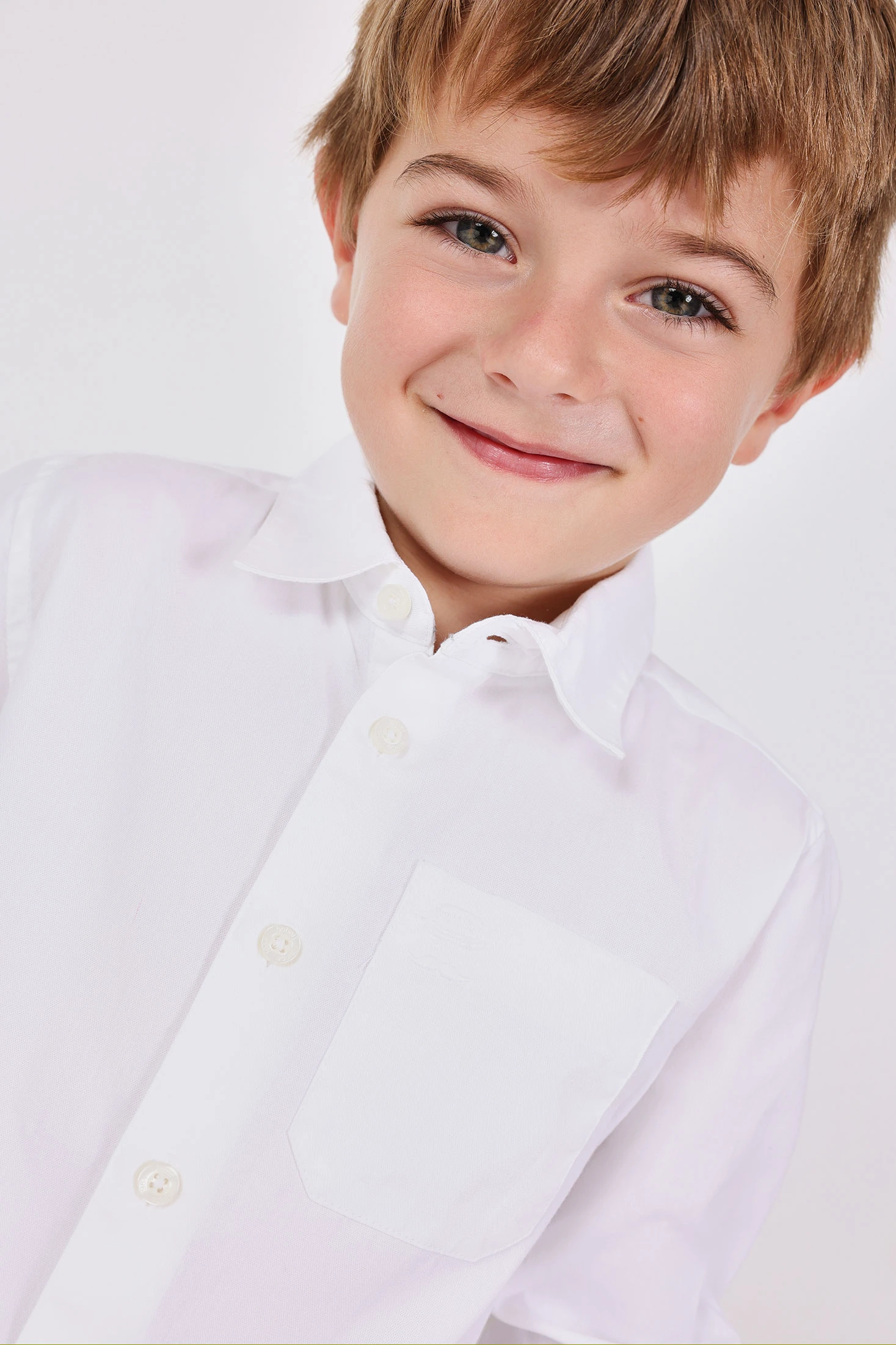 Weißes Oxford-Hemd für Jungen, ein unverzichtbares Kleidungsstück für jeden Anlass, bekannt für seine Weichheit und Bequemlichkeit. Hergestellt aus hochwertigem Material, präsentiert es ein klassisches Design mit Hemdkragen und langen Ärmeln, perfekt für formelle Veranstaltungen und Familienfeiern. Erhältlich bis zu 10 Jahren. Es ist eine ideale Wahl, um mit Hosen für einen bezaubernden und anspruchsvollen Look zu kombinieren. Seine neutrale Farbe erleichtert die Integration in die tägliche Garderobe Ihres Kindes und sorgt bei jedem Tragen für einen makellosen und eleganten Stil.