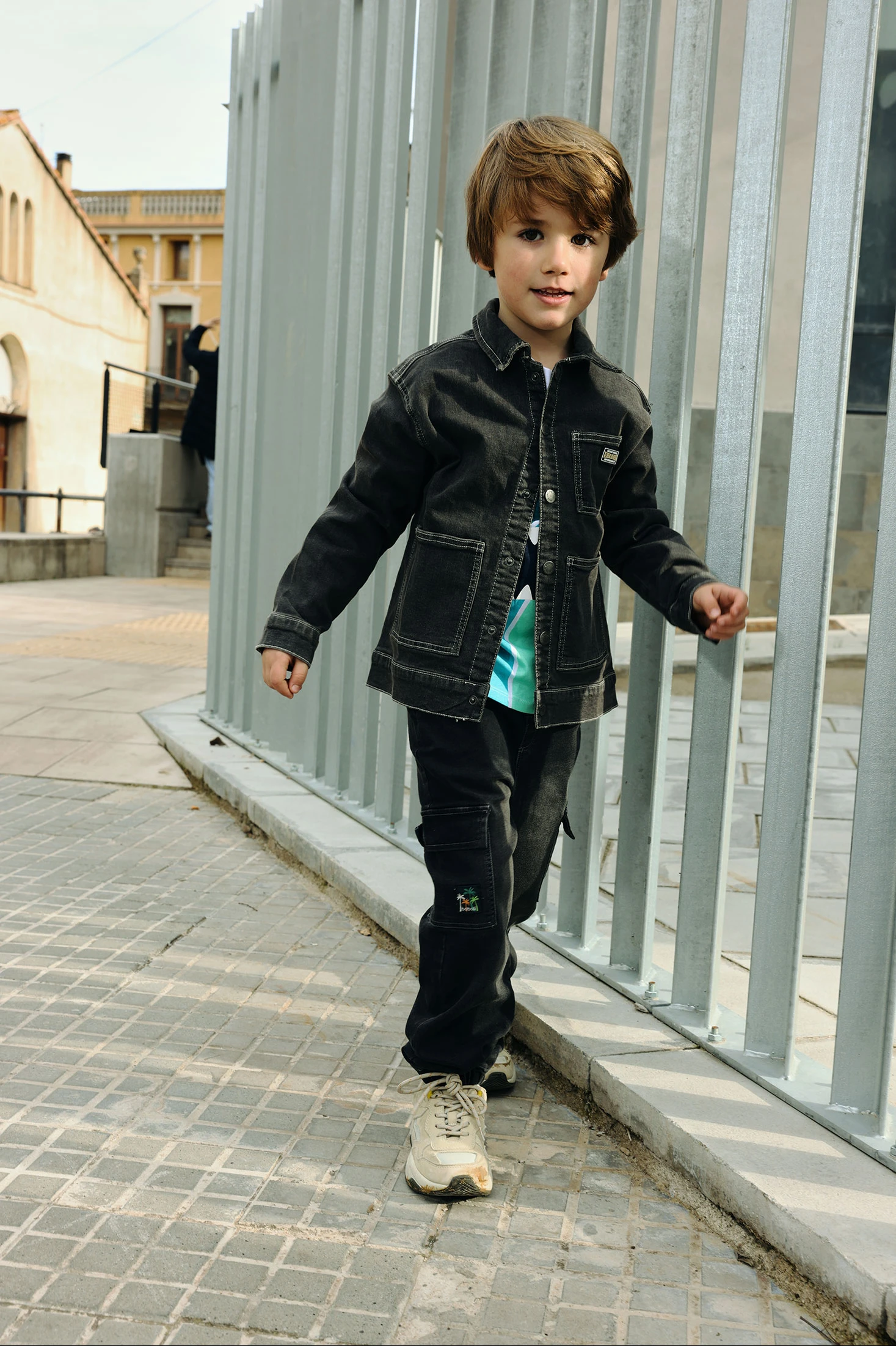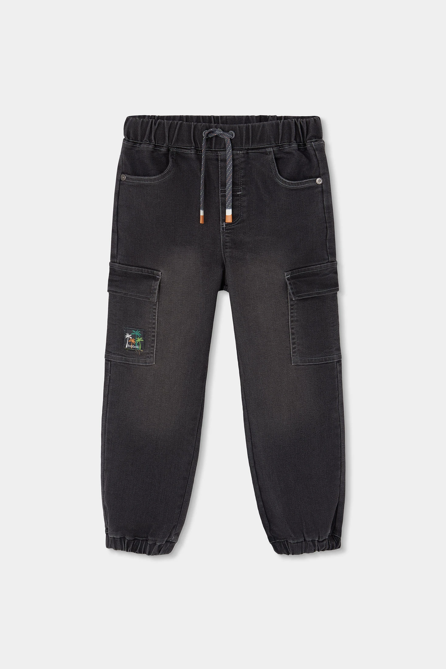 Graue Denim-Hose für Jungen, ideal für den Alltag. Hergestellt aus strapazierfähigem Denim-Stoff, bietet sie Komfort und Stil. Sie verfügt über einen verstellbaren elastischen Bund und funktionale Cargo-Taschen, perfekt für Abenteuer. Als dekoratives Detail zeigt sie eine kleine Stickerei mit Palmen. Erhältlich in Größen von 12 Monaten bis 10 Jahren, um mit dem Wachstum Ihres Kindes mitzuhalten. Die dunkelgraue Farbe macht sie vielseitig kombinierbar mit verschiedenen T-Shirts oder Jacken, ideal für einen lässigen und modernen Look.