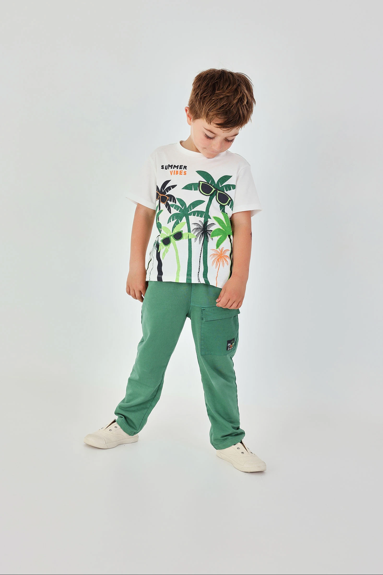 Grüne Fleecehose für Jungen. Hergestellt aus einem weichen und warmen Stoff, bietet sie den ganzen Tag über Komfort. Das Design umfasst geräumige Taschen und lustige Details an der Seite. Ideal für Kinder von 12 Monaten bis 10 Jahren und sorgt für eine passende Passform in jeder Wachstumsphase. Der verstellbare Bund macht sie praktisch für den täglichen Gebrauch. Mit einem vielseitigen und bequemen Stil ist diese Hose eine ausgezeichnete Option, um sie mit Sweatshirts oder T-Shirts für einen lässigen und bequemen Look zu kombinieren.