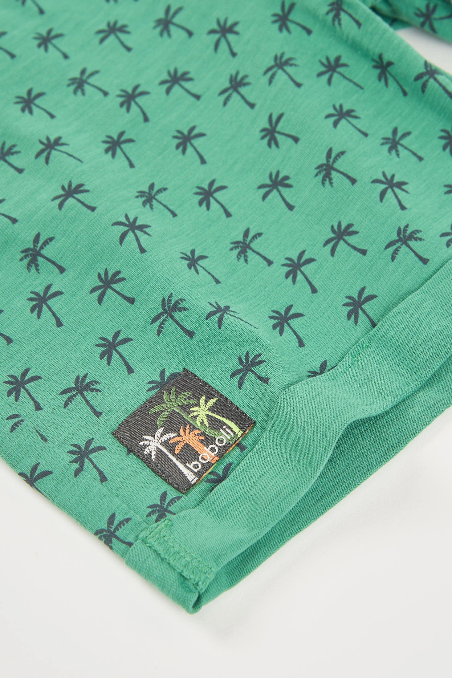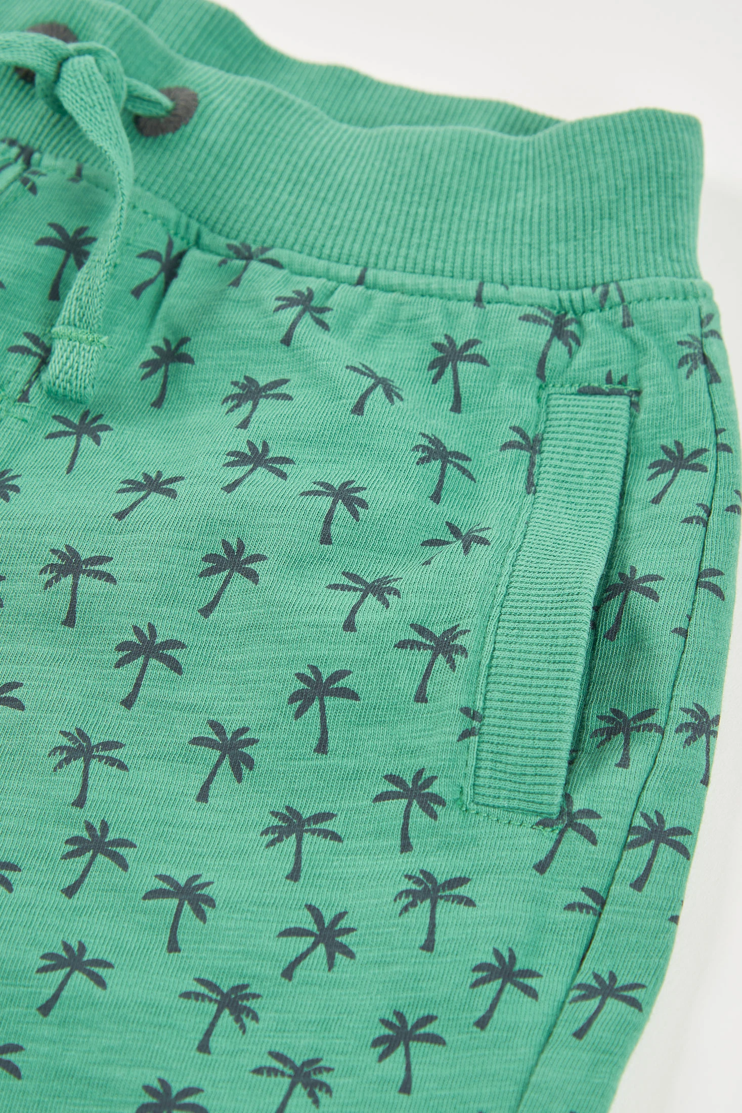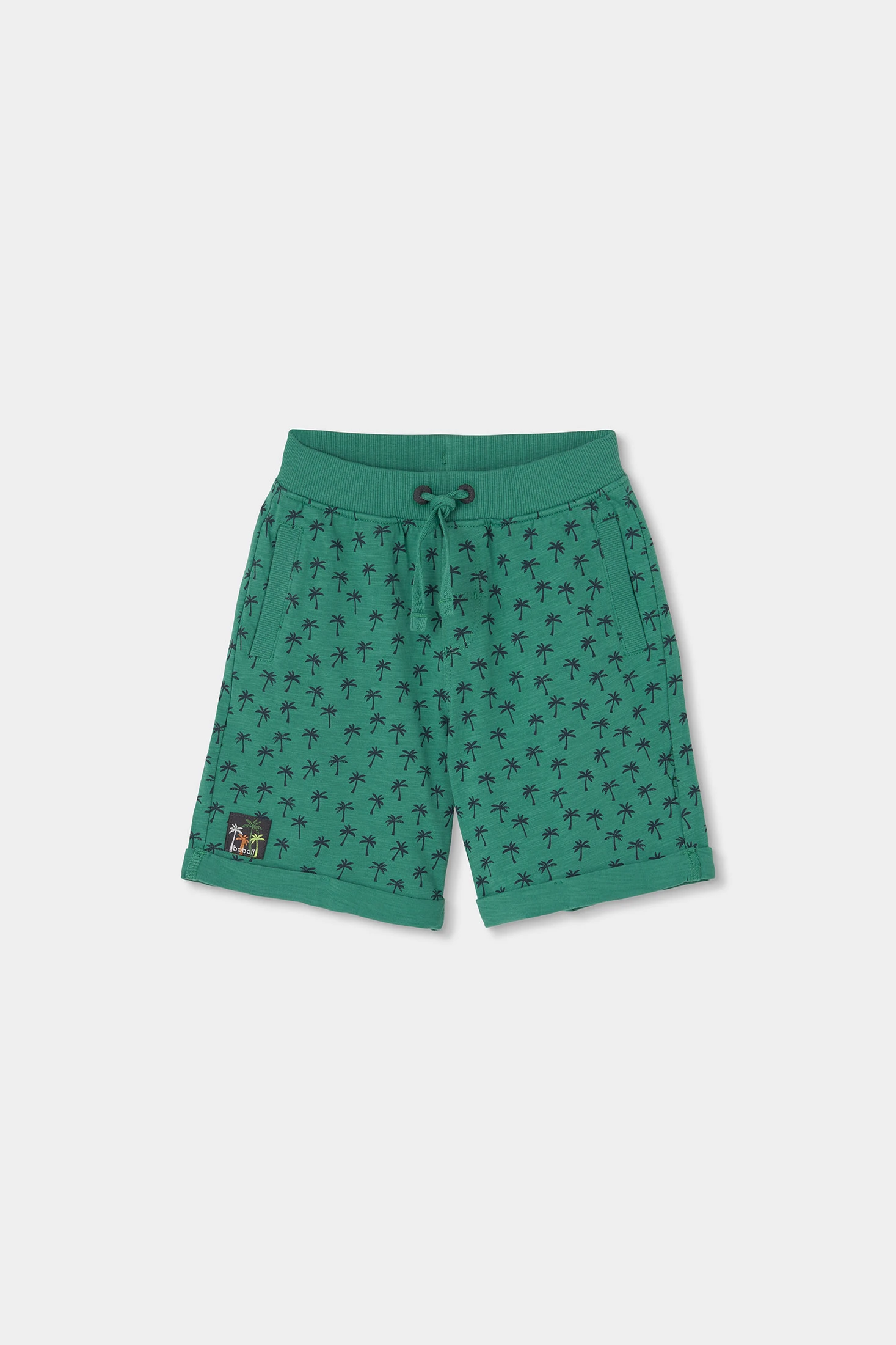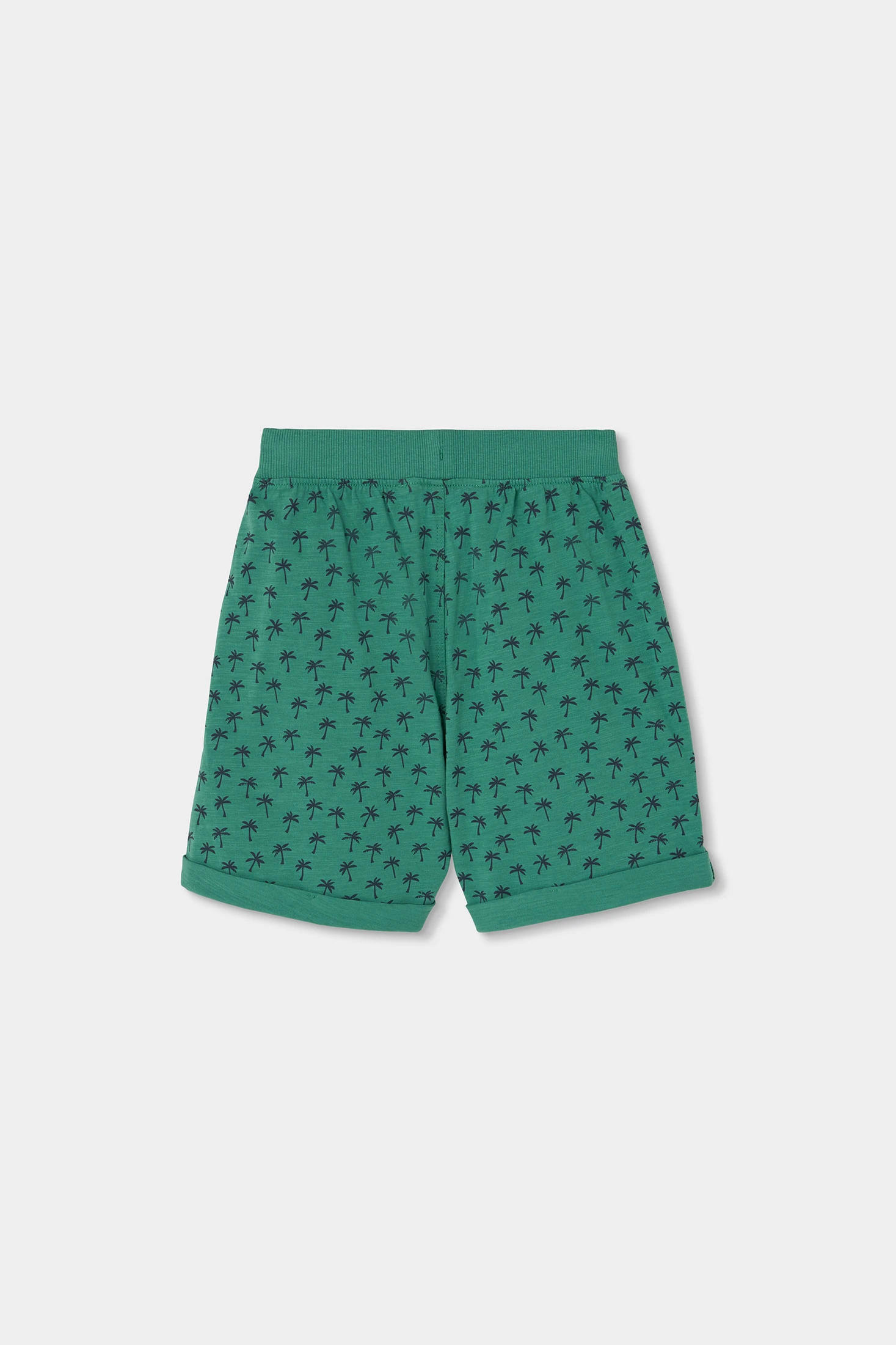 Flammgarn-Shorts für Jungen, die sich durch ihr fröhliches und bequemes Design auszeichnen. Mit einem Druck kleiner Palmen sind sie perfekt, um dem Sommer einen tropischen Touch zu verleihen. Hergestellt aus einem weichen Stoff, bieten sie bei jeder Bewegung Komfort. Erhältlich in Größen von 12 Monaten bis 10 Jahren. Die leuchtend grüne Farbe macht sie ideal, um mit hellen T-Shirts oder bunten Blusen kombiniert zu werden und jedem Outfit Frische und Stil zu verleihen.