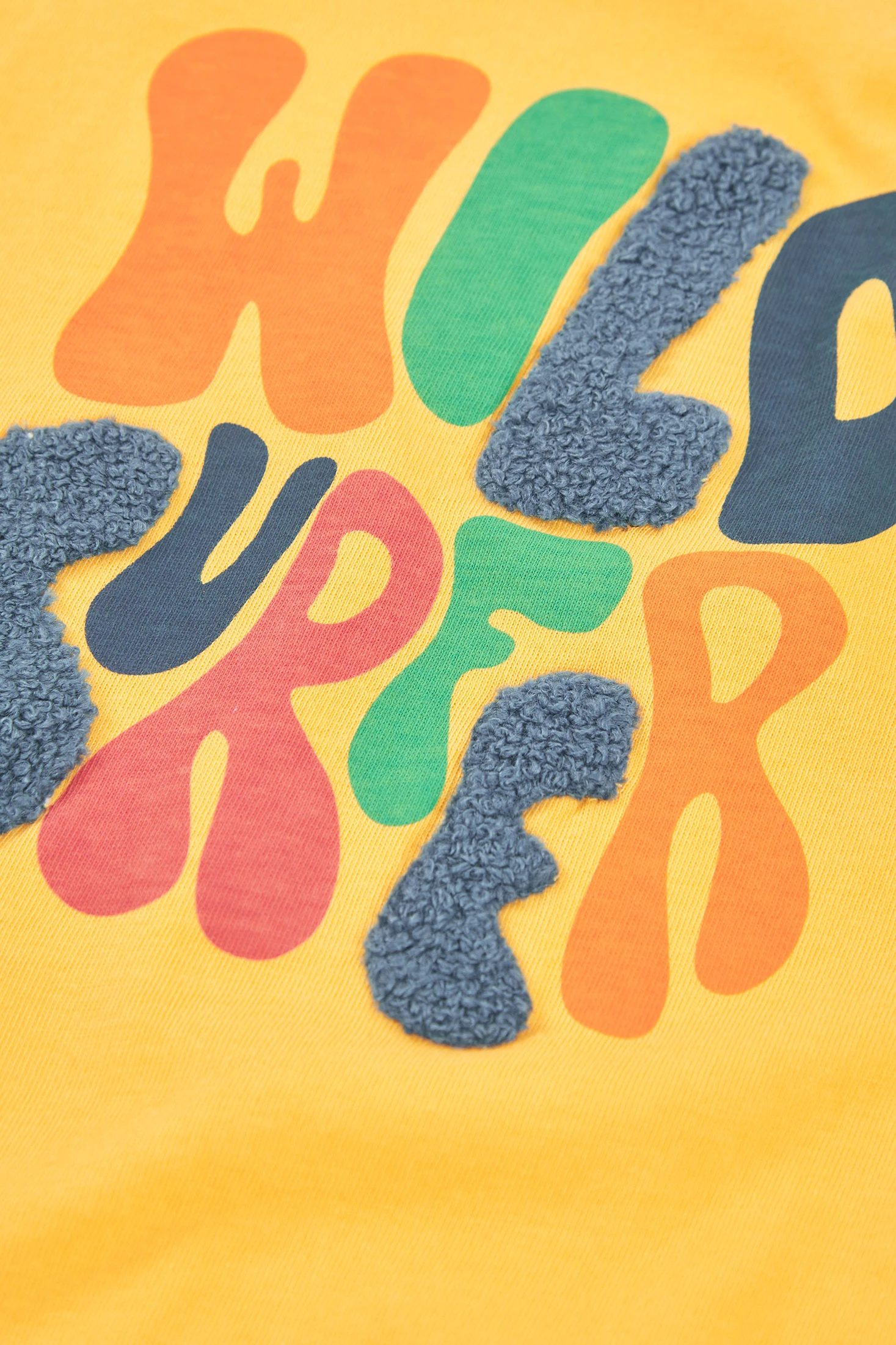 Ärmelloses T-Shirt für Jungen, ideal für sonnige Tage, aus Baumwolljersey gefertigt, das Weichheit und Frische bietet. In leuchtendem Gelb, besticht es durch ein Design mit bunten Buchstaben in der Mitte. Erhältlich in Größen von 2 bis 14 Jahren. Perfekt zum Kombinieren mit kurzen Hosen oder Jeans, bringt es einen fröhlichen und jugendlichen Touch in den Kleiderschrank jedes Kindes. Das ärmellose Design macht es besonders bequem für Spiel und Spaß im Freien.