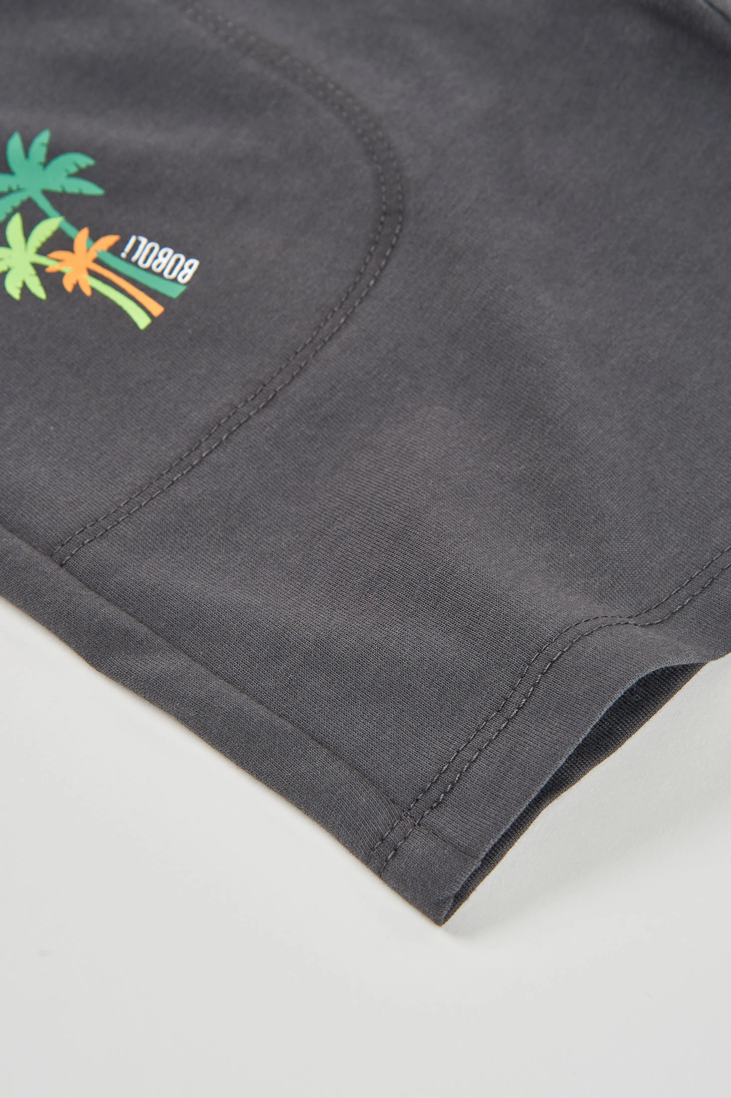 Graue Baumwollbermuda, ideal für Kinder, bietet Komfort und Frische. Ihr Design umfasst einen kleinen Palmenprint, der eine lustige Note hinzufügt. Das Kleidungsstück verfügt über einen verstellbaren elastischen Bund mit Kordelzug, der eine sichere und optimale Passform garantiert. Erhältlich in den Größen von 12 Monaten bis 14 Jahren, passt sie sich dem Wachstum des Kindes an. Perfekt zum Kombinieren mit T-Shirts an warmen Tagen, ist diese Bermuda eine praktische und vielseitige Option für den Alltag.