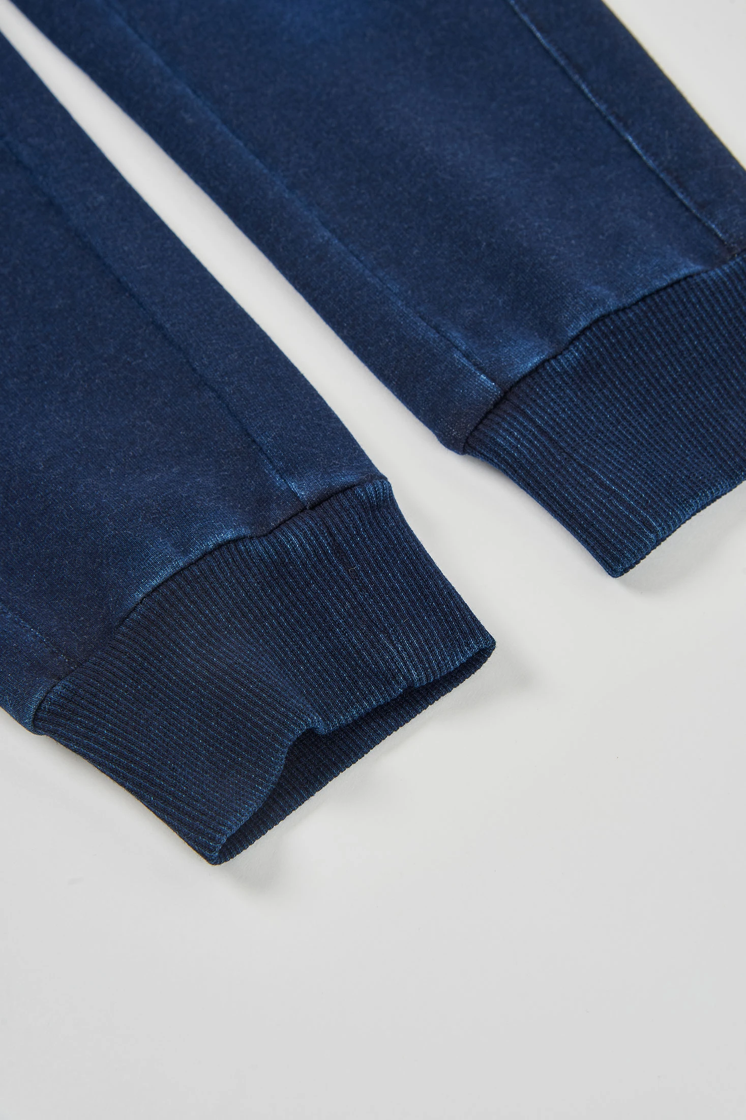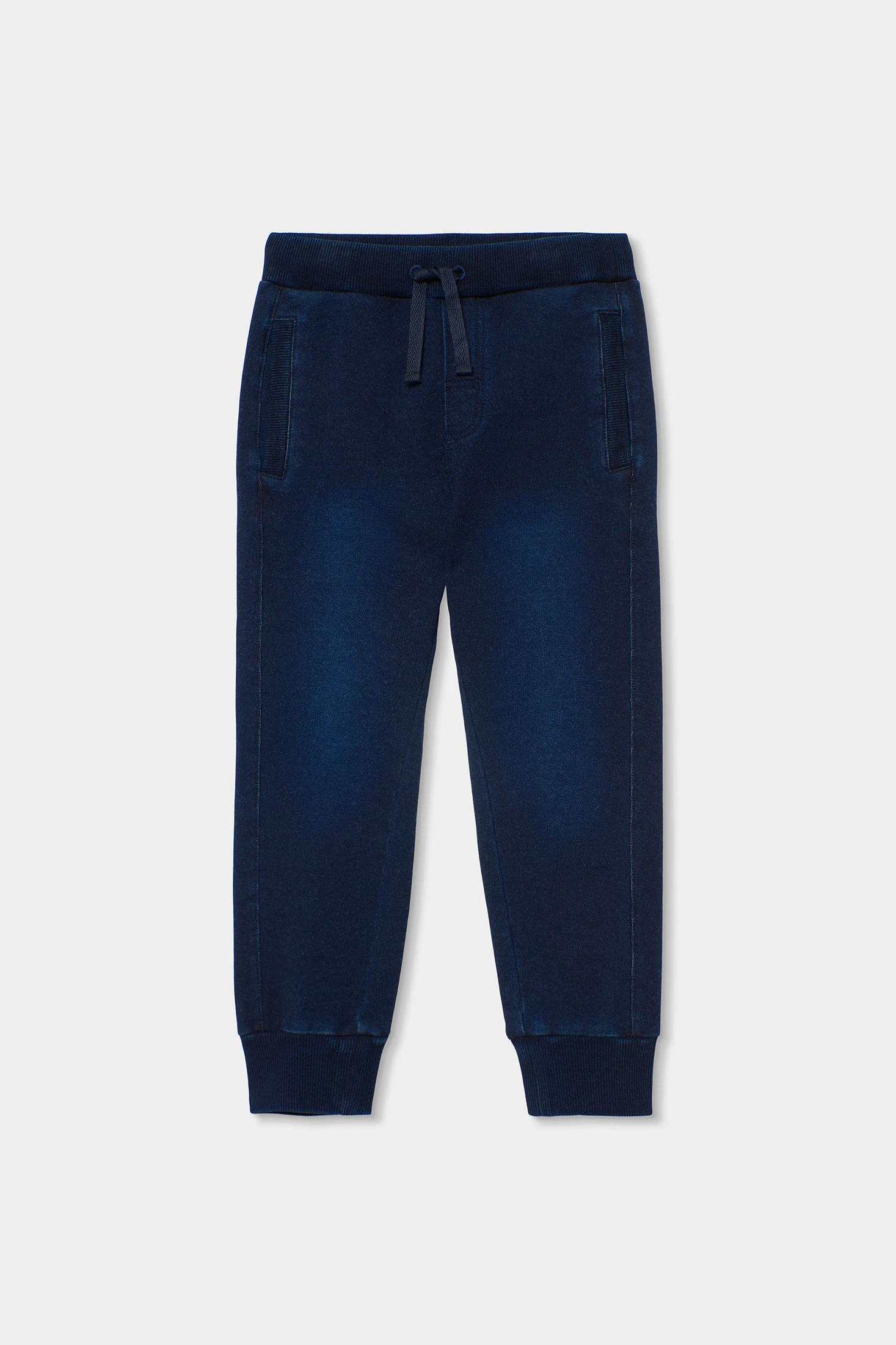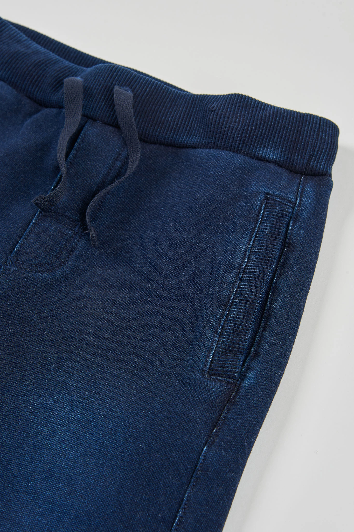 Denim-Fleece-Hose für Jungen in Marineblau, entworfen für ein ausgewogenes Verhältnis von Komfort und Stil. Der Stoff in Denim-Optik sorgt für einen modernen Look, während das elastische Fleece Weichheit und Bewegungsfreiheit garantiert. Sie besteht aus 78% Baumwolle, 15% Polyester und 7% Elasthan und bietet eine bequeme und langlebige Passform. Ein praktisches und leicht kombinierbares Kleidungsstück, ideal für den täglichen Gebrauch.