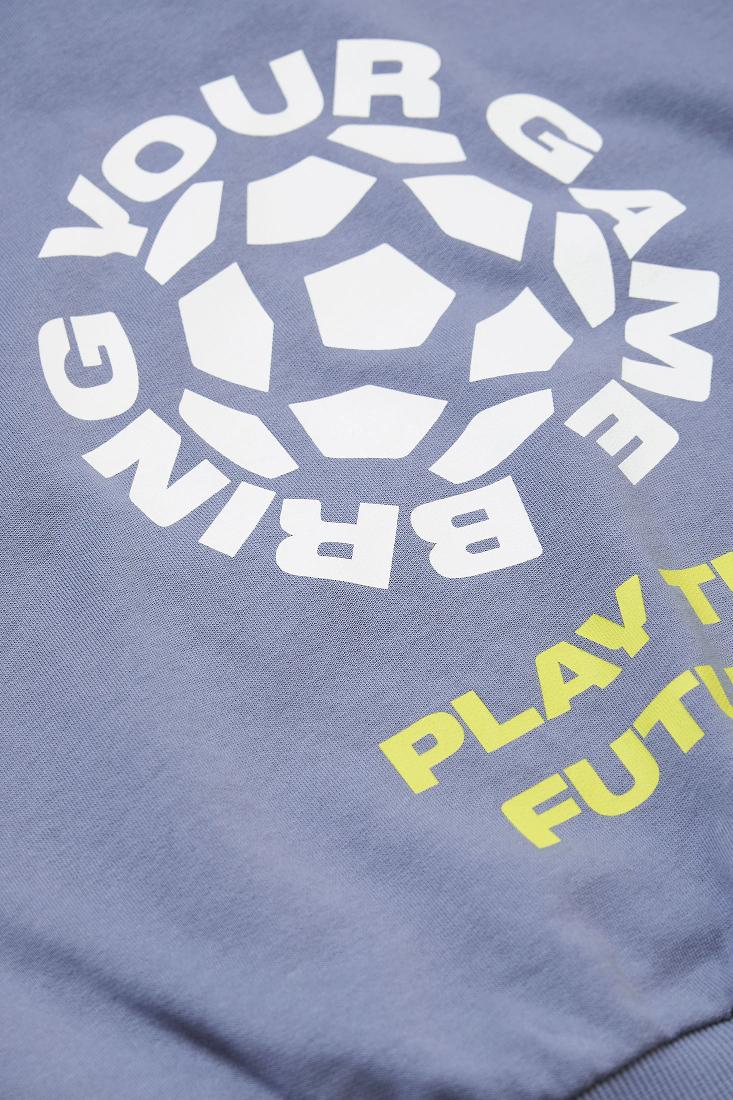 Kapuzen-Sweatshirt für Jungen in Blau. Es besticht durch seine Drucke mit den Texten "Play The Future" und "Bring Your Game", zusammen mit dem Logo der FIFA WORLD CUP 2026©. Die Rückseite zeigt eine große Ballgrafik mit dem kreisförmigen Text "Bring Your Game". Ausgestattet mit einer Känguru-Fronttasche sowie Bündchen und Saum in Ripp. Erhältlich in Größen von 4 bis 14 Jahren.