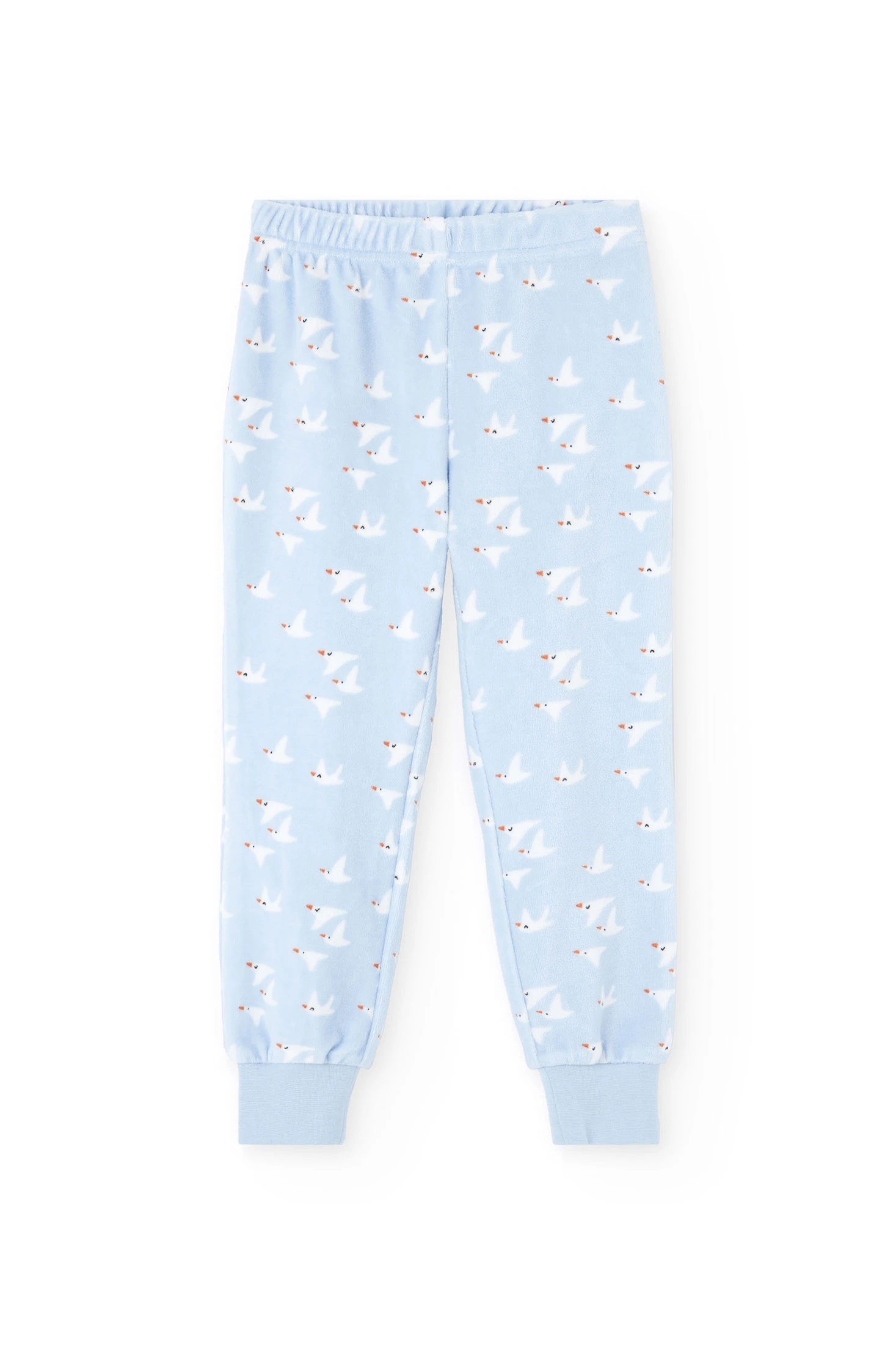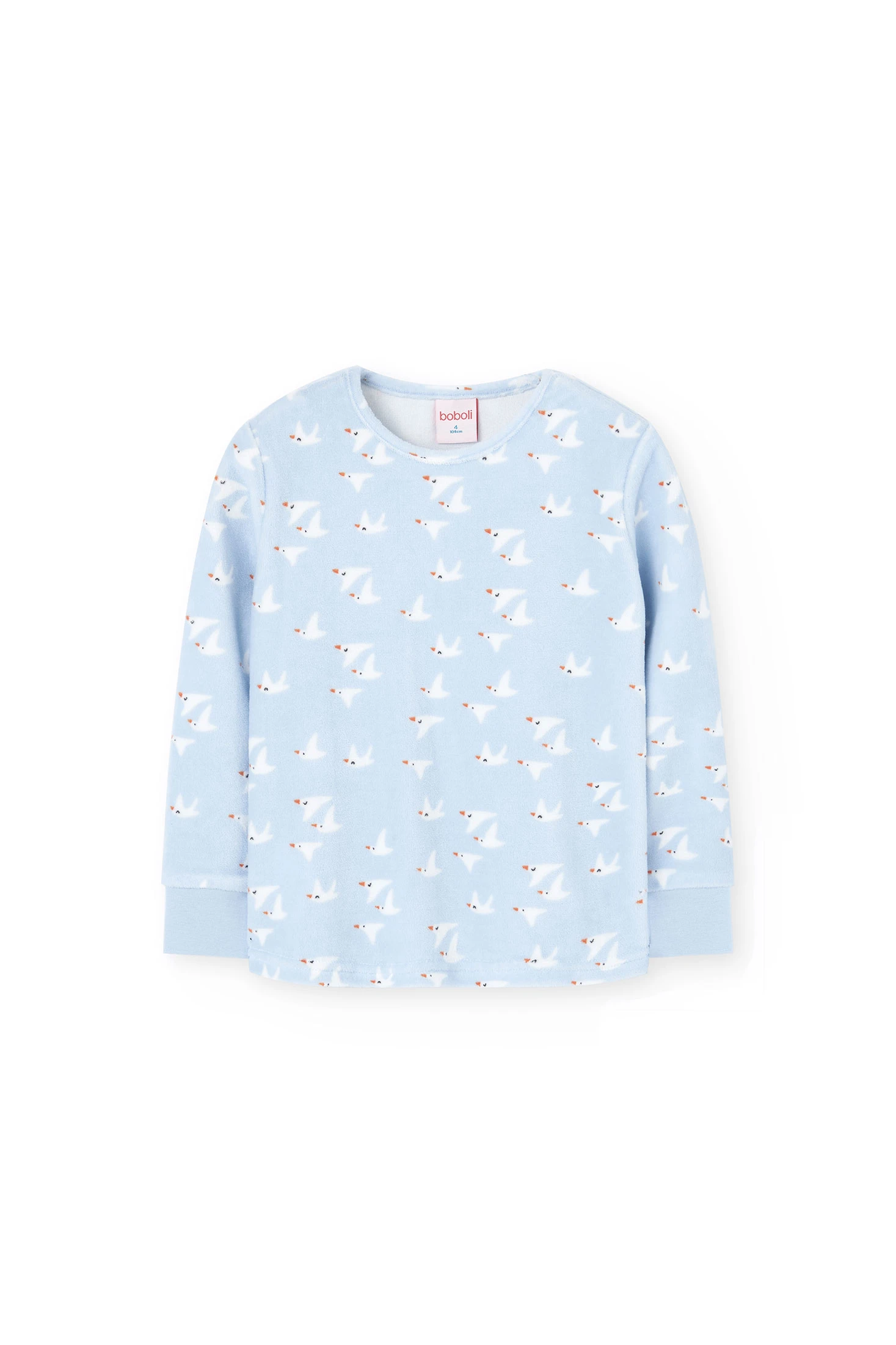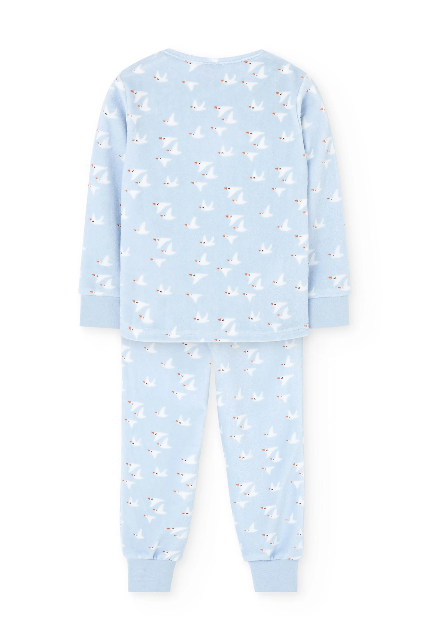 Mädchen-Schlafanzug aus hellblauem Samt mit Möwenmuster