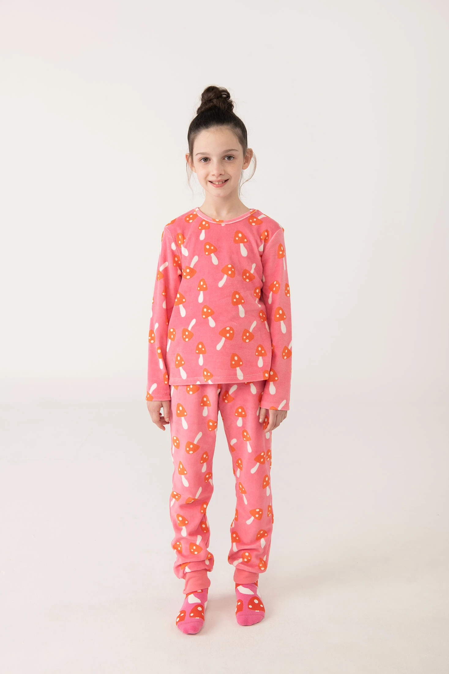 Mädchen Schlafanzug aus rosa Samt mit Pilzen