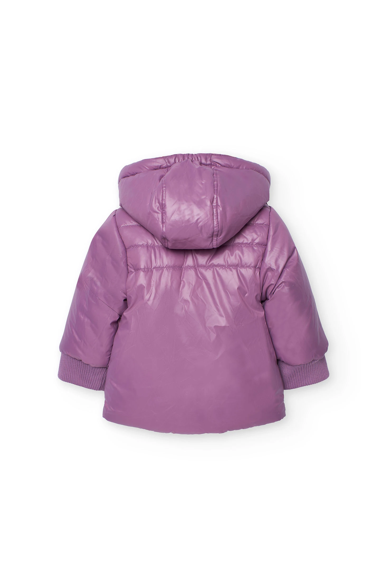 Wendbare Mädchenparka aus technischem Gewebe in Lila mit Blumen