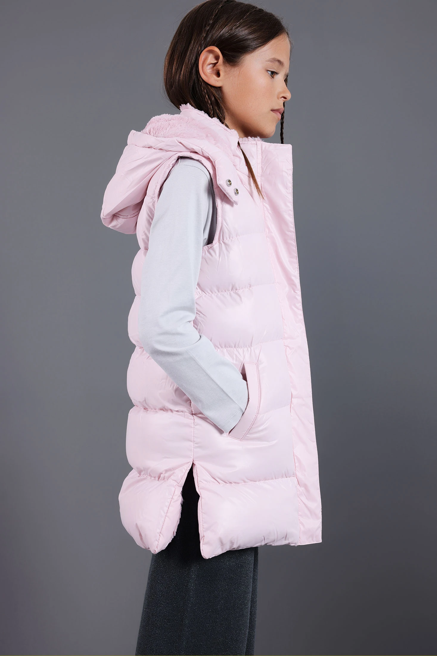 Technische rosa Weste für Mädchen, ideal für kühle Klimazonen wie Herbst und Winter. Entworfen mit einem leichten, aber thermischen Material, bietet sie Wärme, ohne den Komfort zu beeinträchtigen. Ein hellrosa Ton verleiht jedem Outfit einen femininen und charmanten Touch. Verfügbar in Größen von 2 bis 14 Jahren, um eine perfekte Passform für jedes Mädchen zu gewährleisten. Mit Kapuze und Vordertaschen lässt sie sich leicht mit langärmeligen T-Shirts oder Pullovern kombinieren und bietet Vielseitigkeit und Stil während der gesamten Saison.