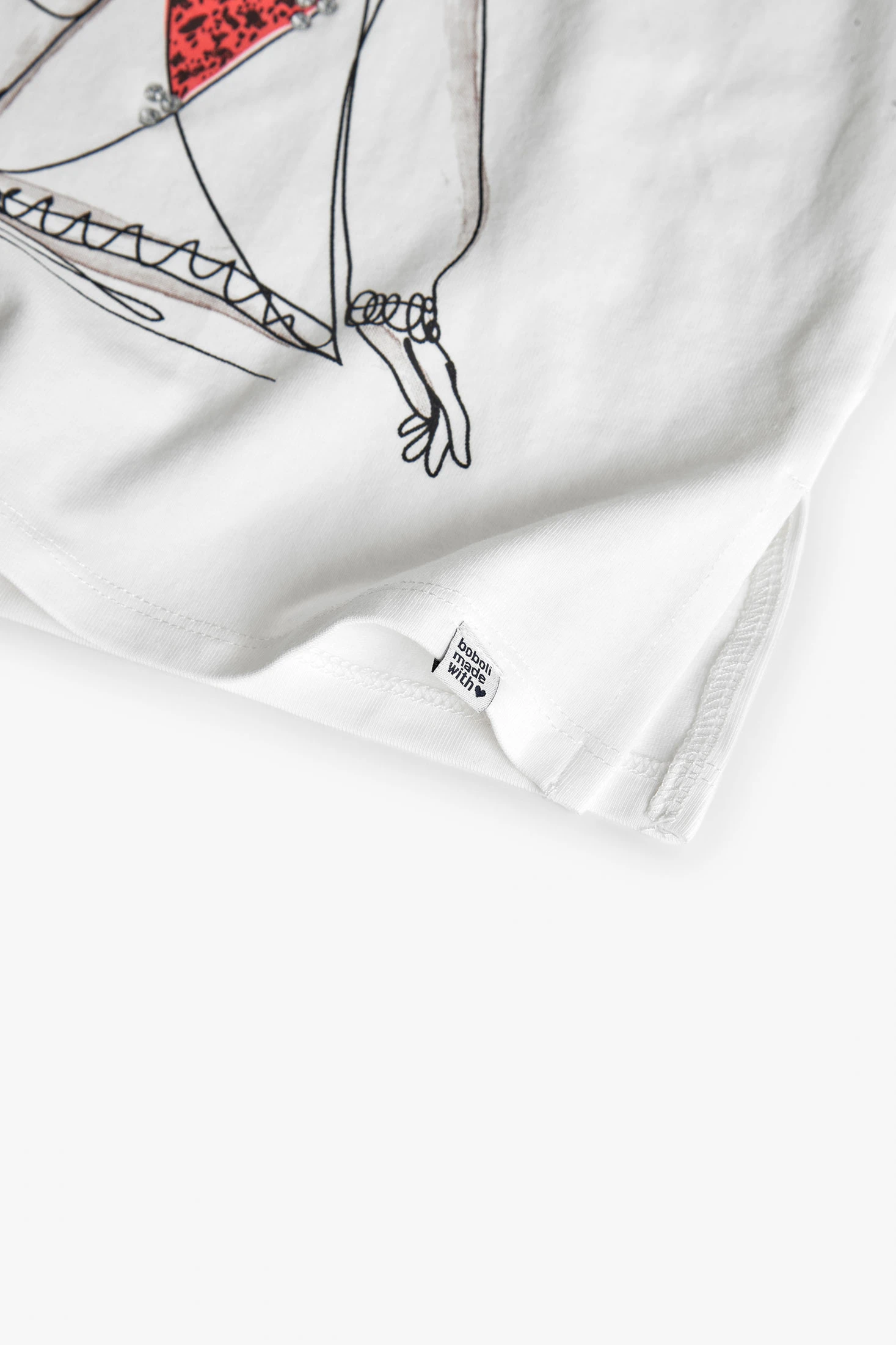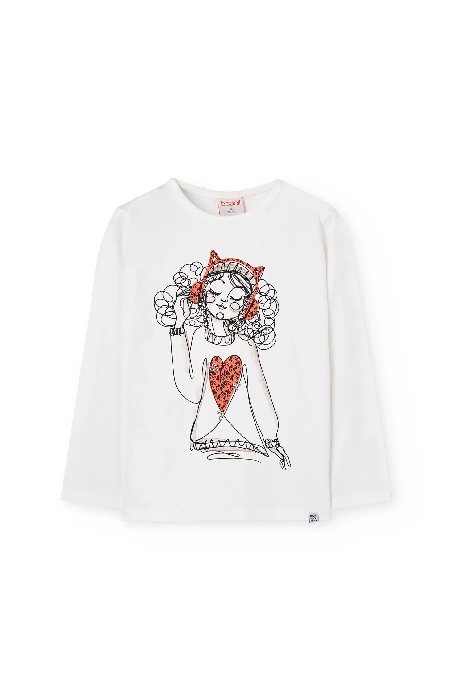 Weißes Strick-T-Shirt für Mädchen, vielseitig und bequem für den täglichen Gebrauch, hergestellt aus einem weichen Strickstoff, der Bewegungsfreiheit garantiert, ideal für kleine Abenteurerinnen. Sein Design umfasst einen entzückenden Aufdruck eines Mädchens, der einen lustigen und einzigartigen Akzent setzt. Erhältlich in den Größen 2 bis 14, lässt es sich leicht mit Hosen, Röcken oder Shorts kombinieren und passt sich jeder Jahreszeit an. Mit seinem klassischen Rundhalsausschnitt wird dieses Kleidungsstück zu einem praktischen und stilvollen Basic in der Kinder-Garderobe.