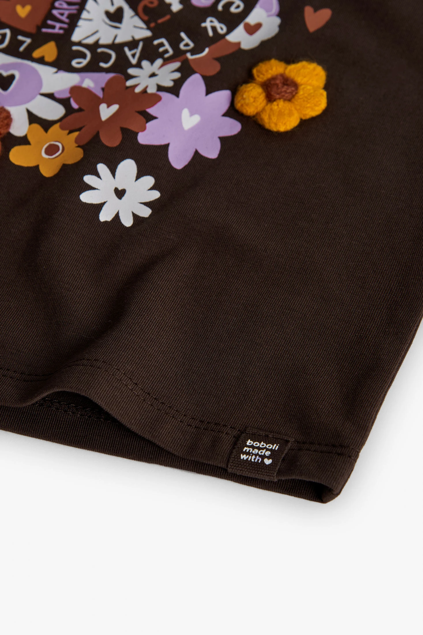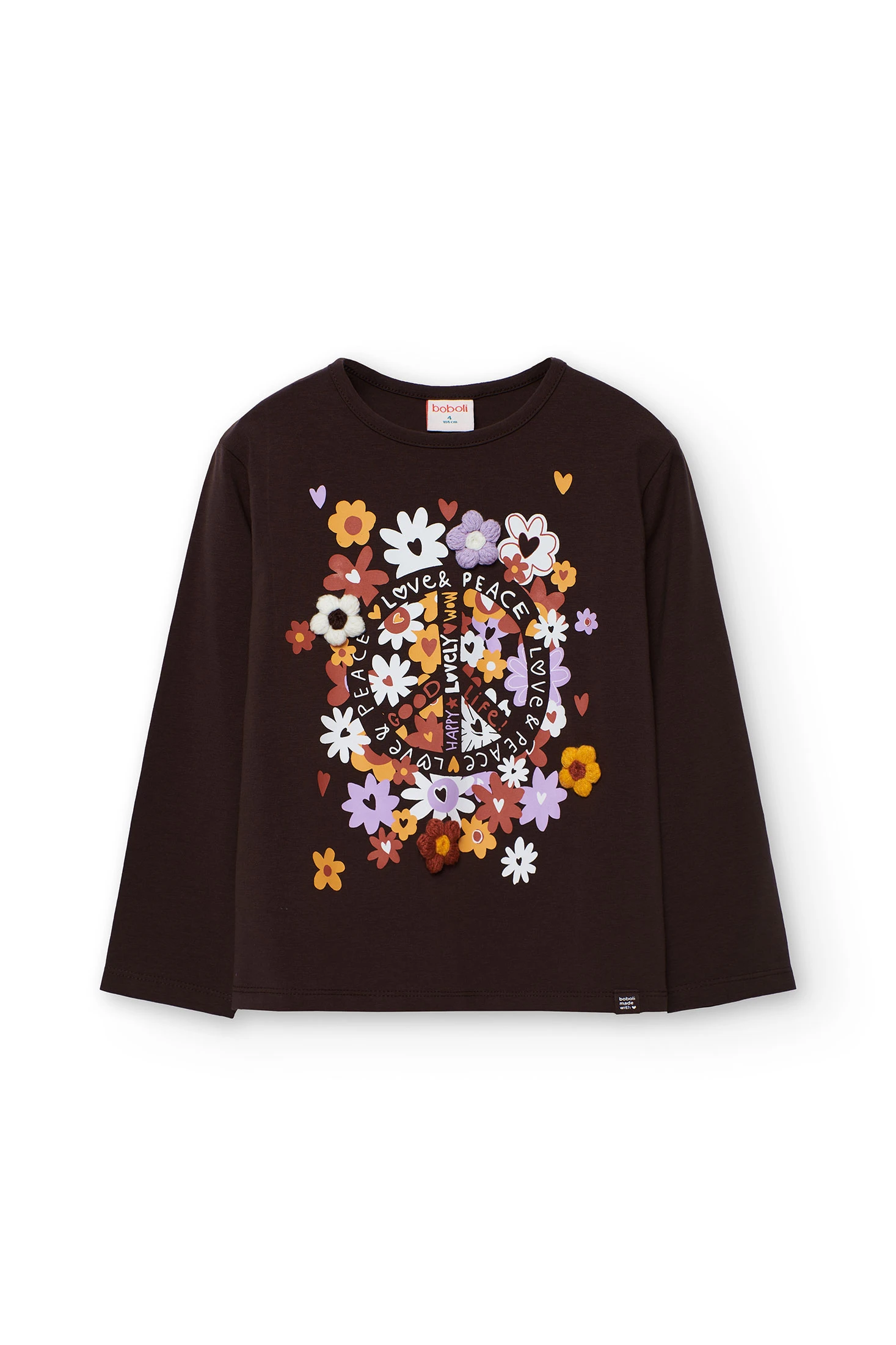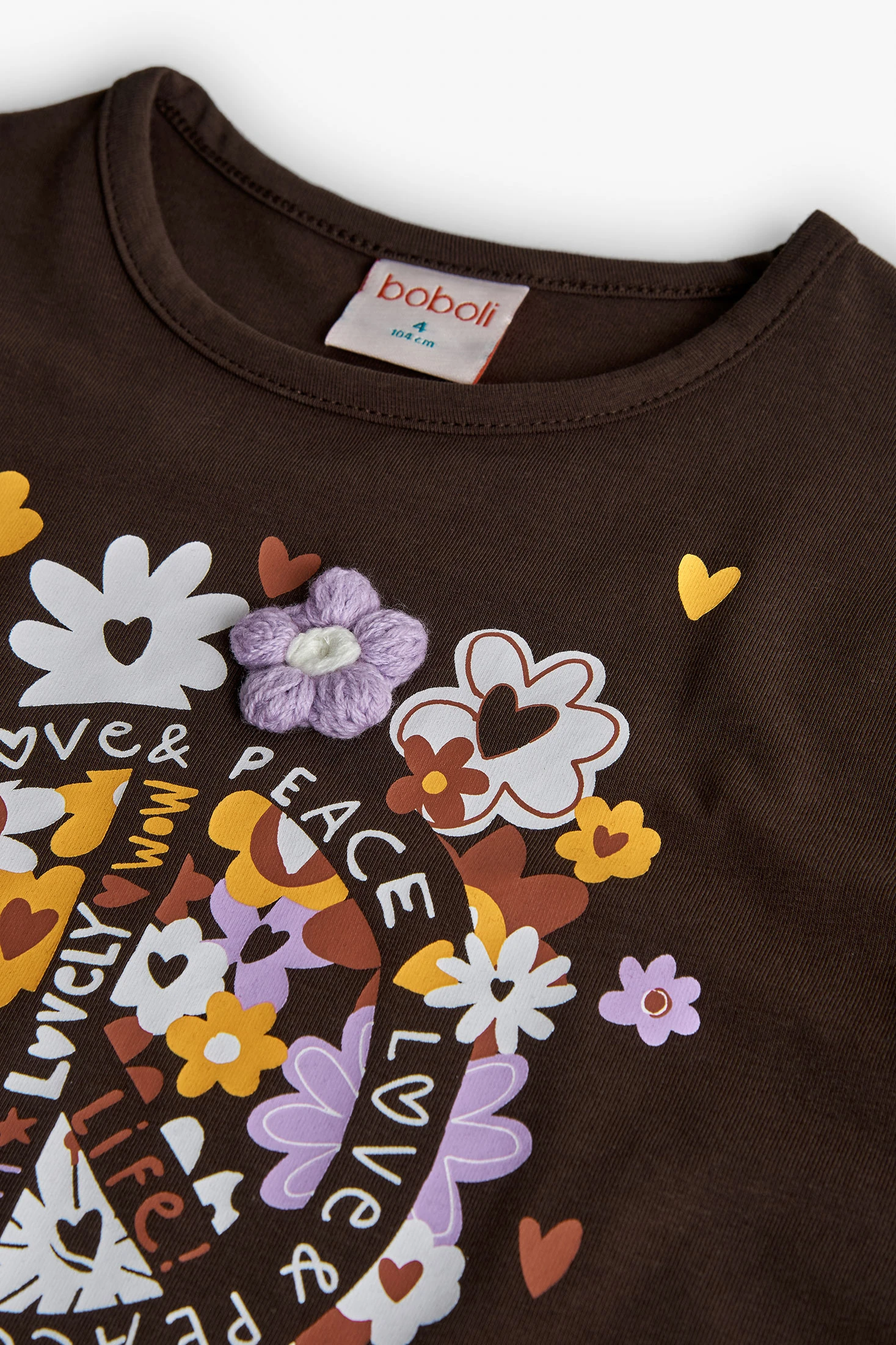 Mädchen-T-Shirt aus braunem Strick mit Blumen