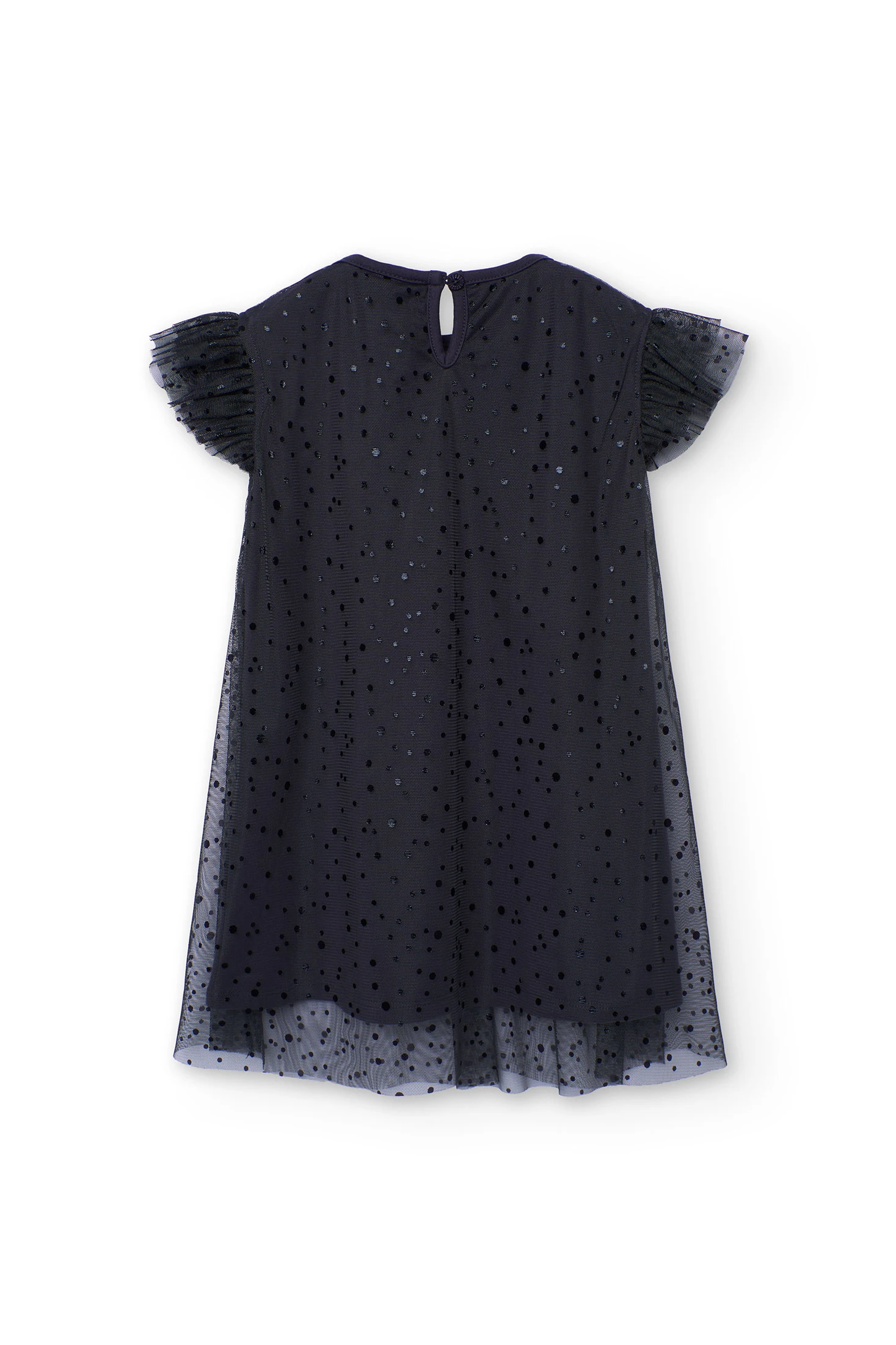 Schwarzes Tüllkleid mit glänzenden Punkten