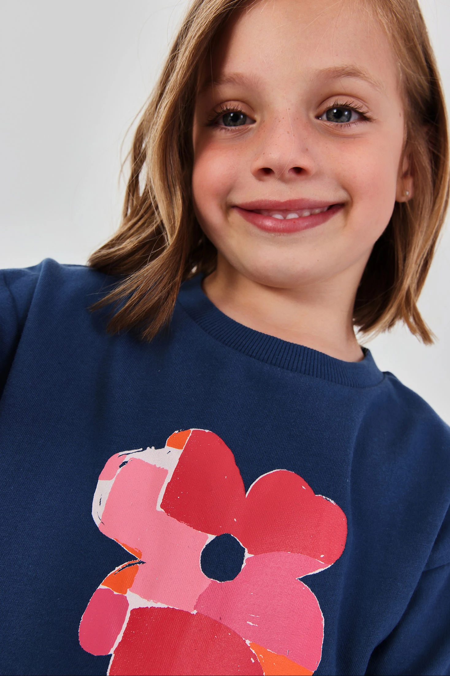 Marineblaues Sweatshirt aus Plüsch für Mädchen, ideal für Herbst und Winter. Mit einem Blumendesign in Rosa- und Orangetönen auf der Vorderseite verleiht es dem Outfit einen fröhlichen Touch. Hergestellt aus weichem Plüschstoff, bietet es Wärme und Komfort. Es verfügt über einen Rundhalsausschnitt und lange Ärmel, perfekt, um warm zu bleiben. Erhältlich in Größen von 12 Monaten bis 14 Jahren. Vielseitiges Kleidungsstück, leicht zu kombinieren mit Jeans oder Leggings, ideal für den täglichen Gebrauch oder für informelle Anlässe.