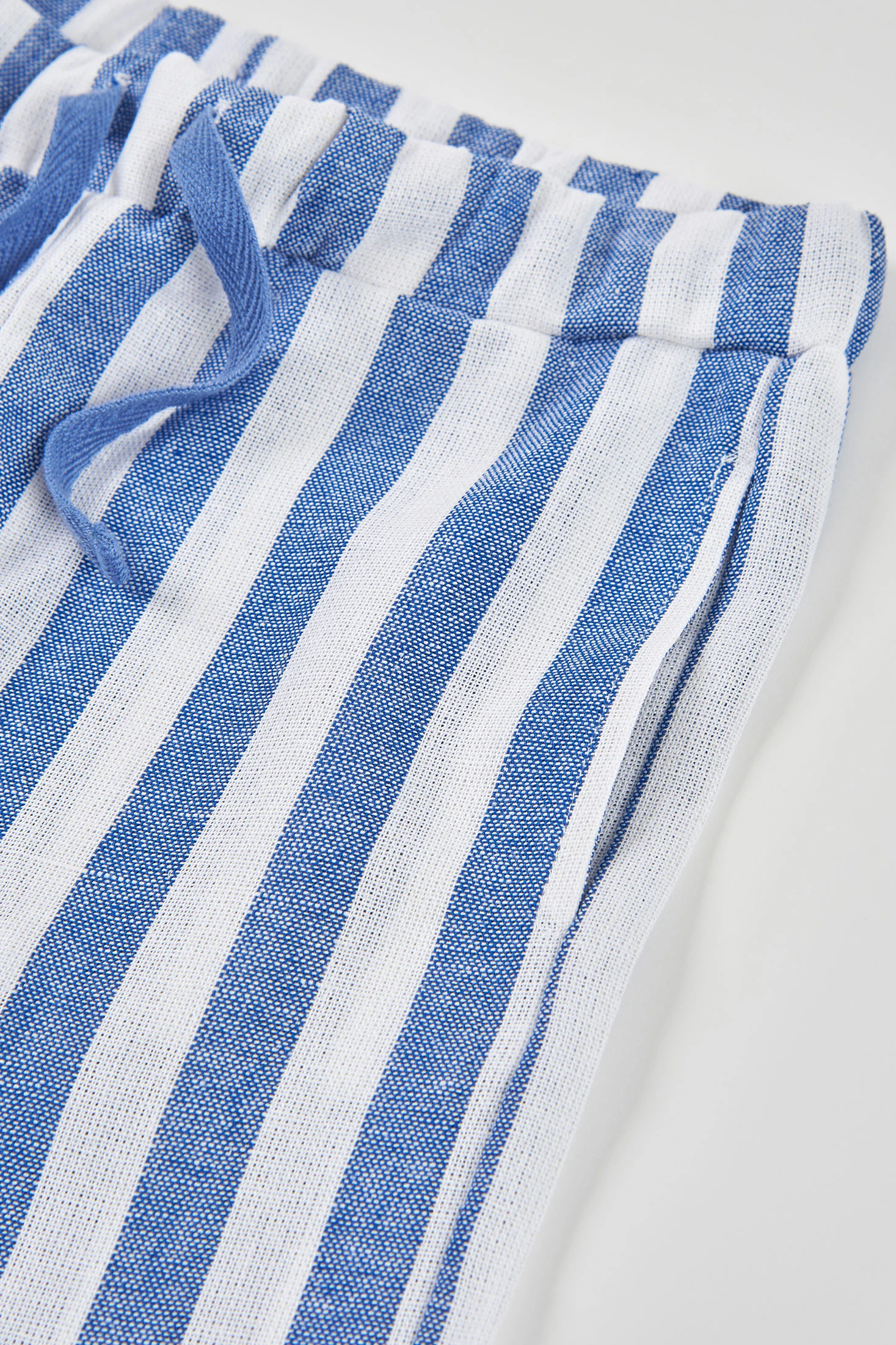 Gestreifte Leinenhosen für Mädchen bieten ein frisches und bequemes Aussehen. Das Leinenmaterial garantiert Frische und Leichtigkeit, ideal für warme Tage. Sie haben ein Design mit vertikalen Streifen in Blau und Weiß, das einen klassischen und eleganten Touch verleiht. Der verstellbare Bund sorgt für Komfort und eine perfekte Passform. Erhältlich in Größen von 12 Monaten bis 14 Jahren, sind sie eine vielseitige Option, um sie mit T-Shirts oder Blusen in hellen Farbtönen für einen sommerlichen Look zu kombinieren.