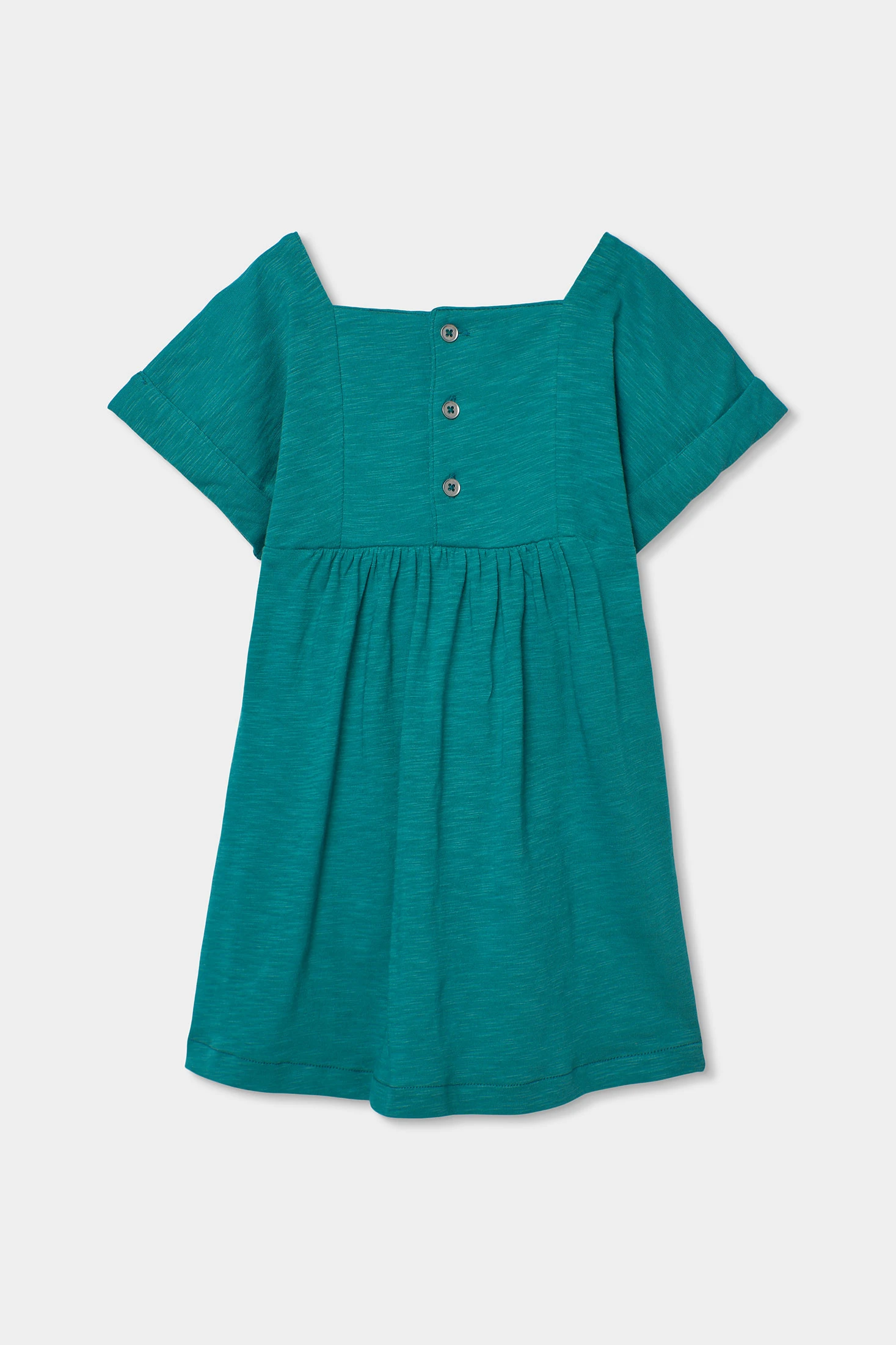 Blaues Flamé-Strickkleid, perfekt für die Sommersaison. Design mit Stickereidetail auf der Brust, das dem Kleid eine lustige Note verleiht. Leichter und bequemer Flamé-Strickstoff, ideal, um die Kleinen an warmen Tagen frisch zu halten. Erhältlich in Größen von 2 bis 14 Jahren. Kurze Ärmel machen es praktisch und vielseitig, gut kombinierbar mit leichten Jacken oder Leggings für kühlere Tage. Lebendiges Blau, das es hervorstechen lässt, eine perfekte Wahl für jede ungezwungene Gelegenheit.