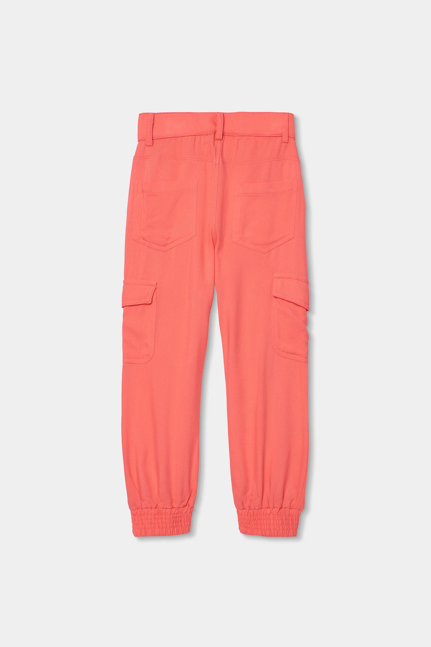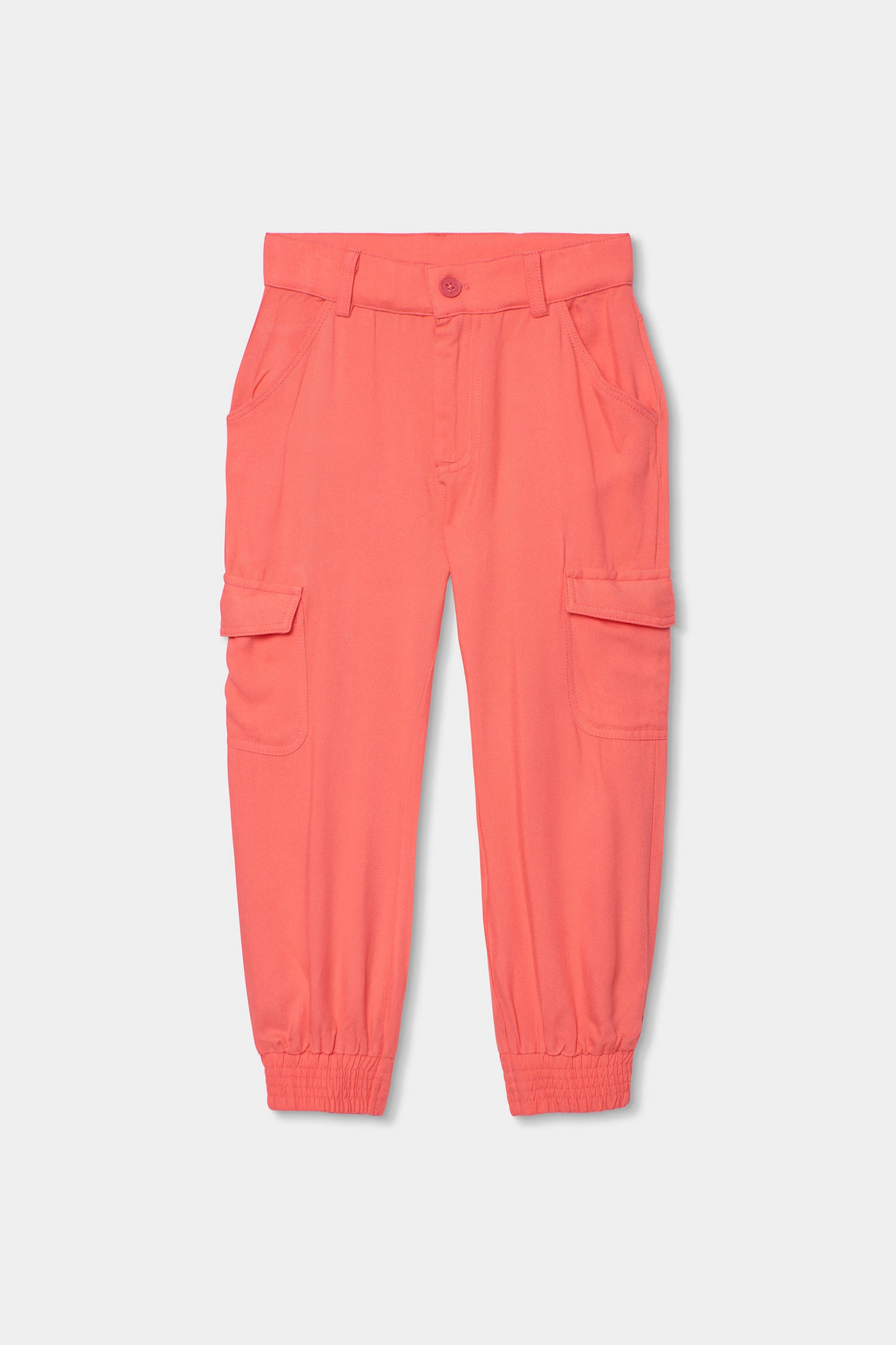Mädchenhose aus Viskose in Erdbeerfarbe. Die Hose hat ein Cargo-Stil-Muster mit seitlichen Taschen und Bündchen am Saum. Gefertigt aus weichen Materialien, bietet sie den ganzen Tag über Komfort. Die verfügbaren Größen reichen von 2 bis 14 Jahren und sorgen für eine angemessene Passform in verschiedenen Wachstumsphasen. Eine vielseitige und attraktive Option für jeden legeren Stil.