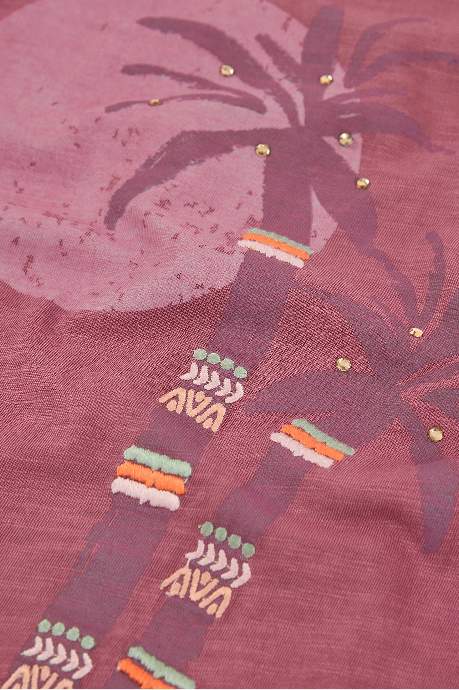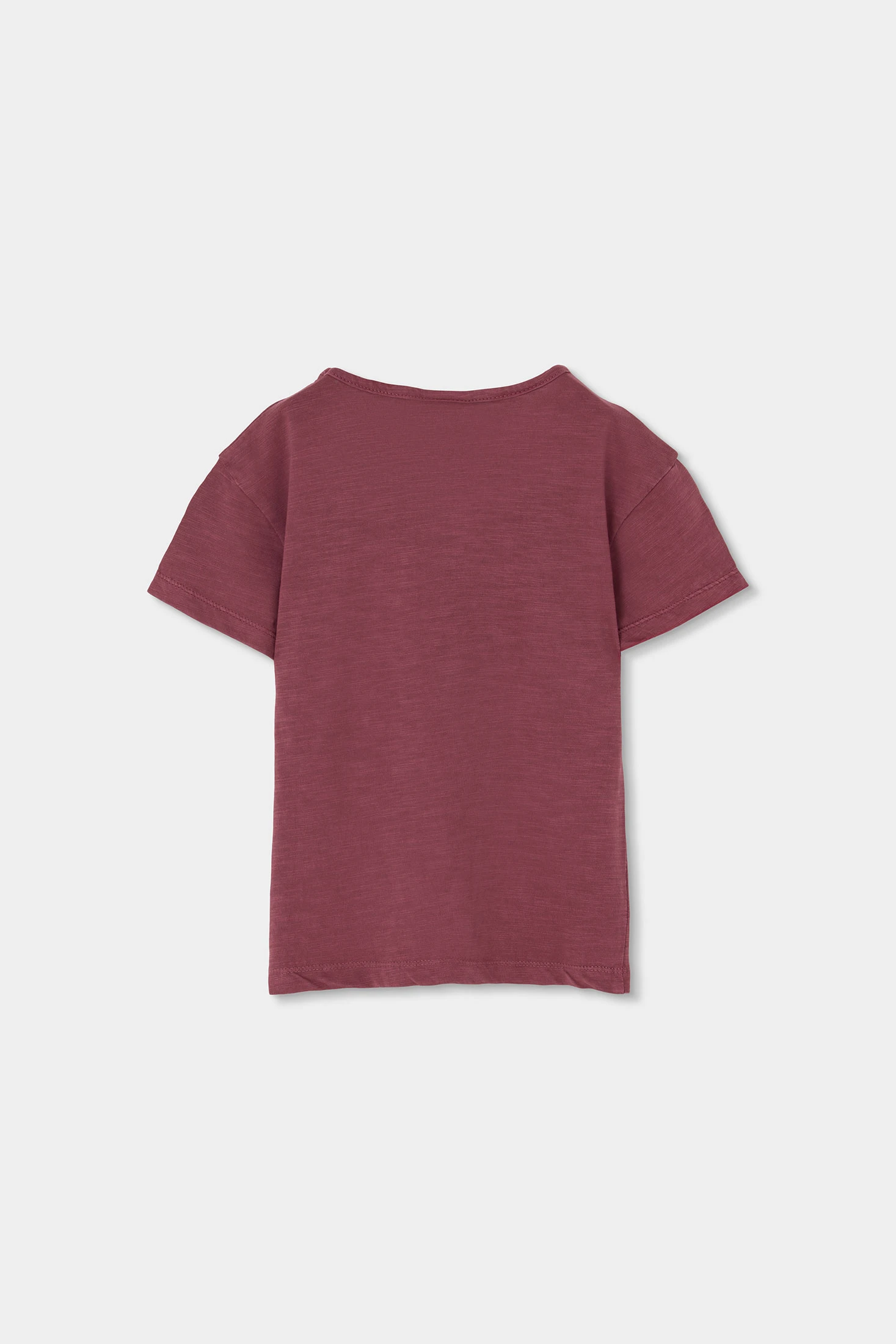 Baumwoll-T-Shirt für Mädchen in einem sanften Pflaumenton, perfekt für den täglichen Gebrauch. Das Design zeigt einen Palmenprint, der einen tropischen und spaßigen Touch verleiht. Mit Rundhalsausschnitt und kurzen Ärmeln ist es ideal für die wärmeren Jahreszeiten. Erhältlich in Größen von 2 bis 14 Jahren, passt es sich dem Wachstum der Mädchen an. Der Baumwollstoff ist bequem und atmungsaktiv und sorgt für ein weiches Gefühl auf der Haut. Ein vielseitiges Kleidungsstück, das sich leicht mit einem Rock oder einer Hose für einen lässigen und frischen Stil kombinieren lässt.