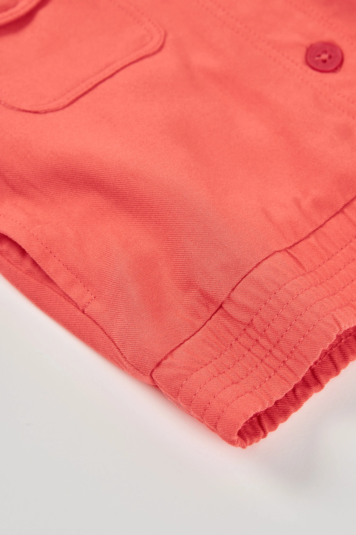 Viscose-Twill-Jacke für Mädchen, perfekt für die kühleren Frühjahrs- oder Sommertage, gefertigt aus einem weichen Stoff, der Komfort und Wärme garantiert. Ihr Design in Erdbeerfarbe macht sie vielseitig und leicht mit verschiedenen Stilen kombinierbar. Mit Knopfverschluss und funktionellen Taschen bietet sie Praktikabilität und Stil. Erhältlich in Größen von 2 bis 14 Jahren, passt sie sich verschiedenen Altersgruppen und Wachstumsphasen an. Ideal, um einen lässigen oder eleganten Look zu vervollständigen, dabei hält sie Ihr Mädchen warm und stilvoll.