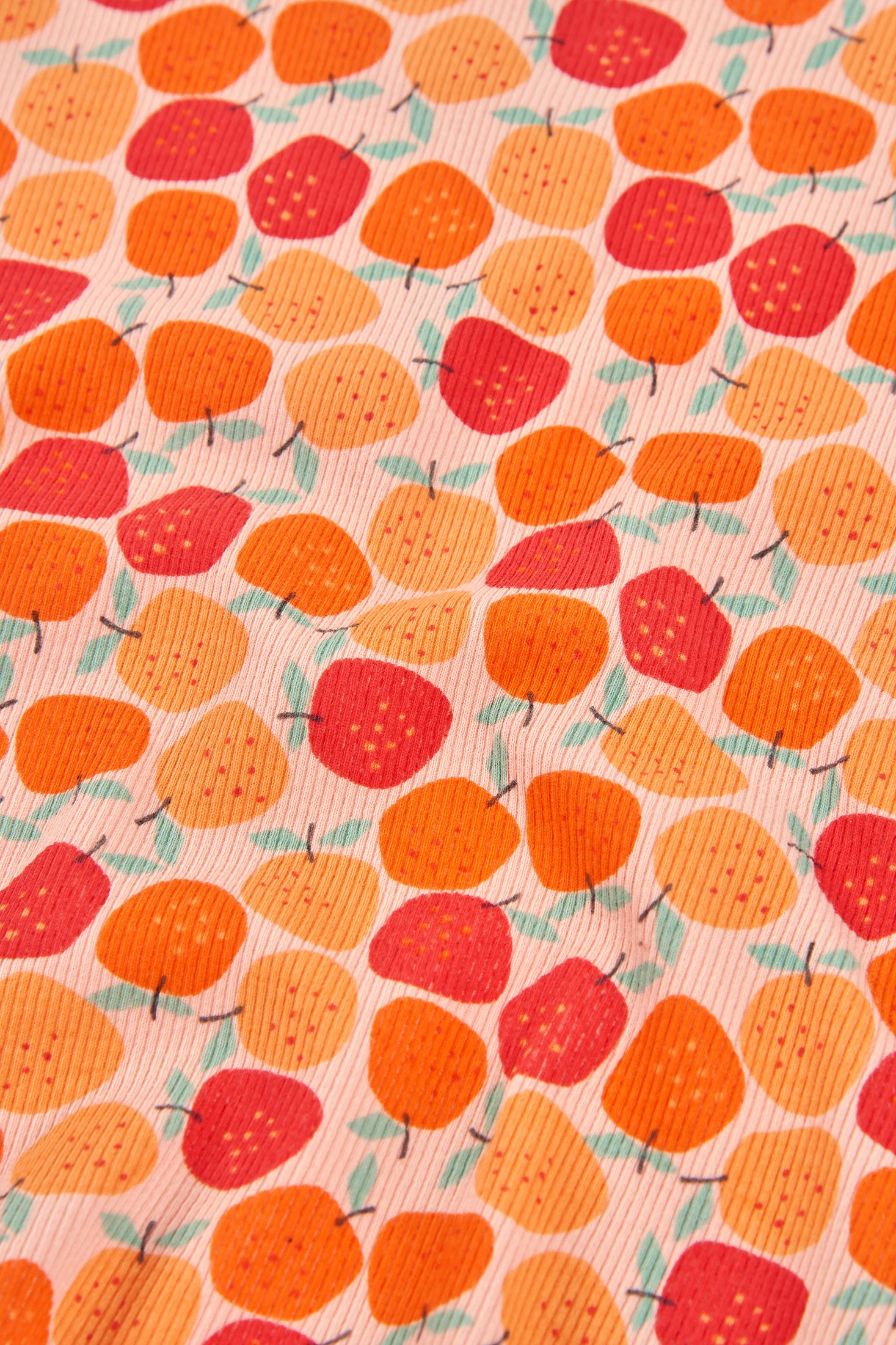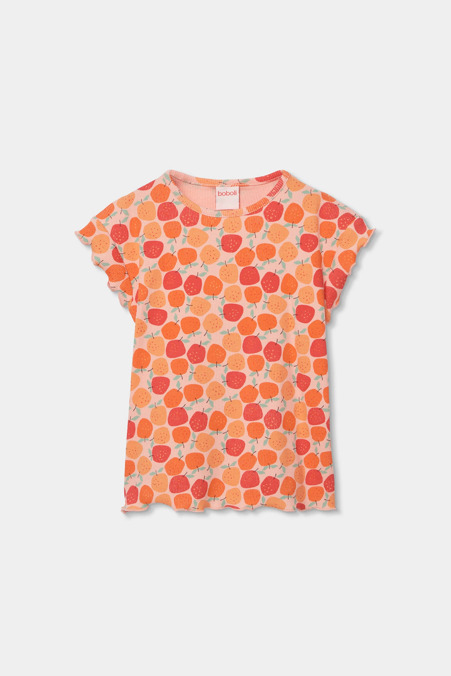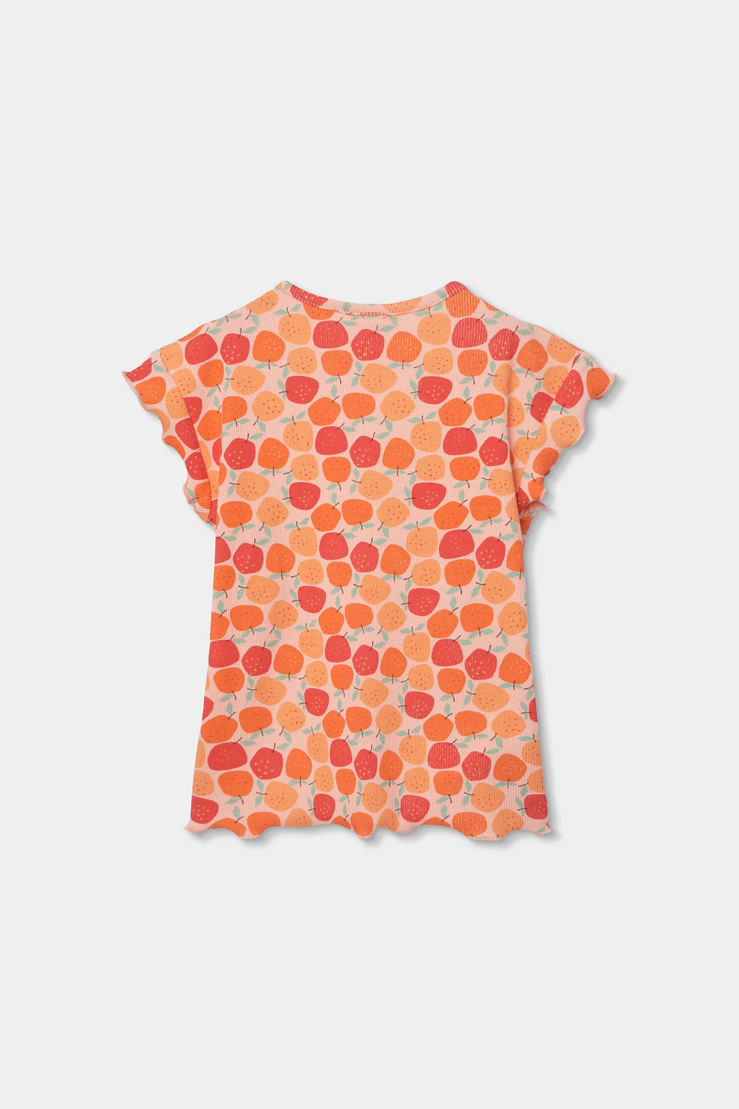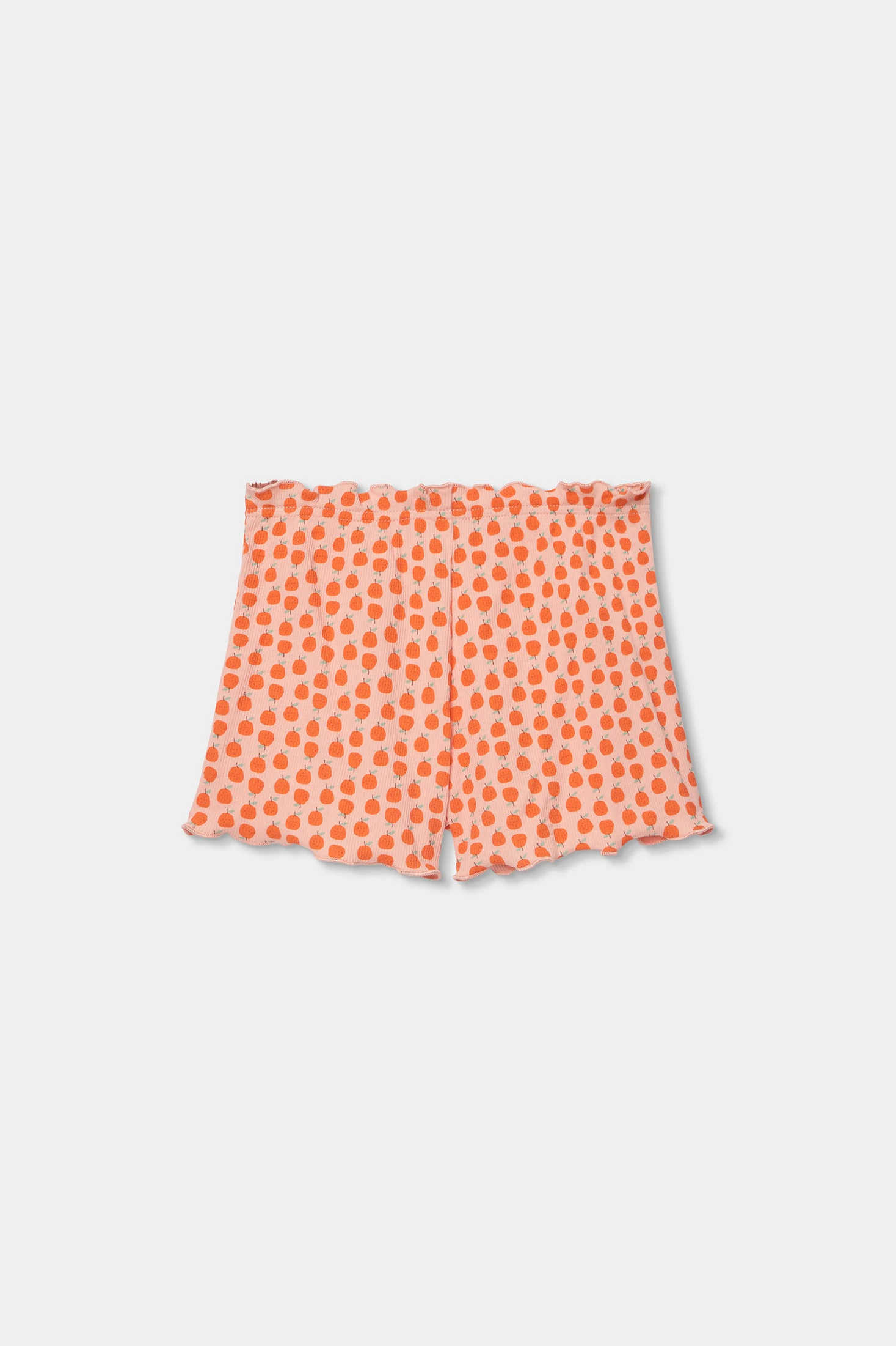 Baumwoll-Pyjama für Mädchen, perfekt um Komfort während der Nächte zu gewährleisten. Er hat einen fröhlichen Fruchtprint in Orangetönen und Rot, der einen lustigen und farbenfrohen Touch verleiht. Er umfasst ein kurzärmeliges T-Shirt und kurze Hosen, ideal für warme Klimazonen. Erhältlich in Größen von 0 Monaten bis 12 Jahren, passt sich dem Wachstum der Mädchen an. Sein weiches und atmungsaktives Gewebe ist ideal für den täglichen Gebrauch und bietet Komfort während der Ruhezeit.