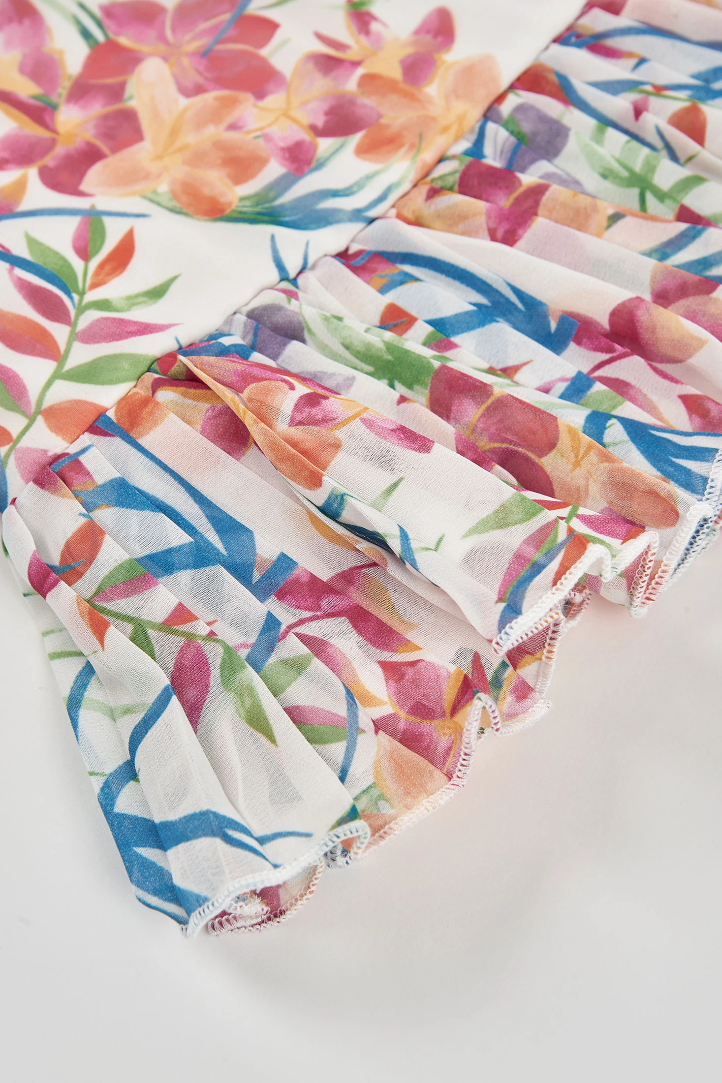 Bedruckte Chiffonbluse, ideal für die Kleinsten, erhältlich von 2 bis 14 Jahren. Ihr leichtes Material bietet Komfort und Frische. Das Design zeigt einen lebendigen Blumenprint in Rosa-, Blau- und Grüntönen, perfekt für einen fröhlichen und sommerlichen Look. Der Saum des Kleidungsstücks ist mit einem Rüschensaum aus demselben plissierten Chiffon gestaltet. Die Träger machen sie ideal für warme Tage, und ihr voluminöser Schnitt verleiht einen romantischen Touch. Sie ist perfekt kombinierbar mit leichten Röcken oder Hosen und verleiht jedem Mädchenstil eine schicke und farbenfrohe Note.